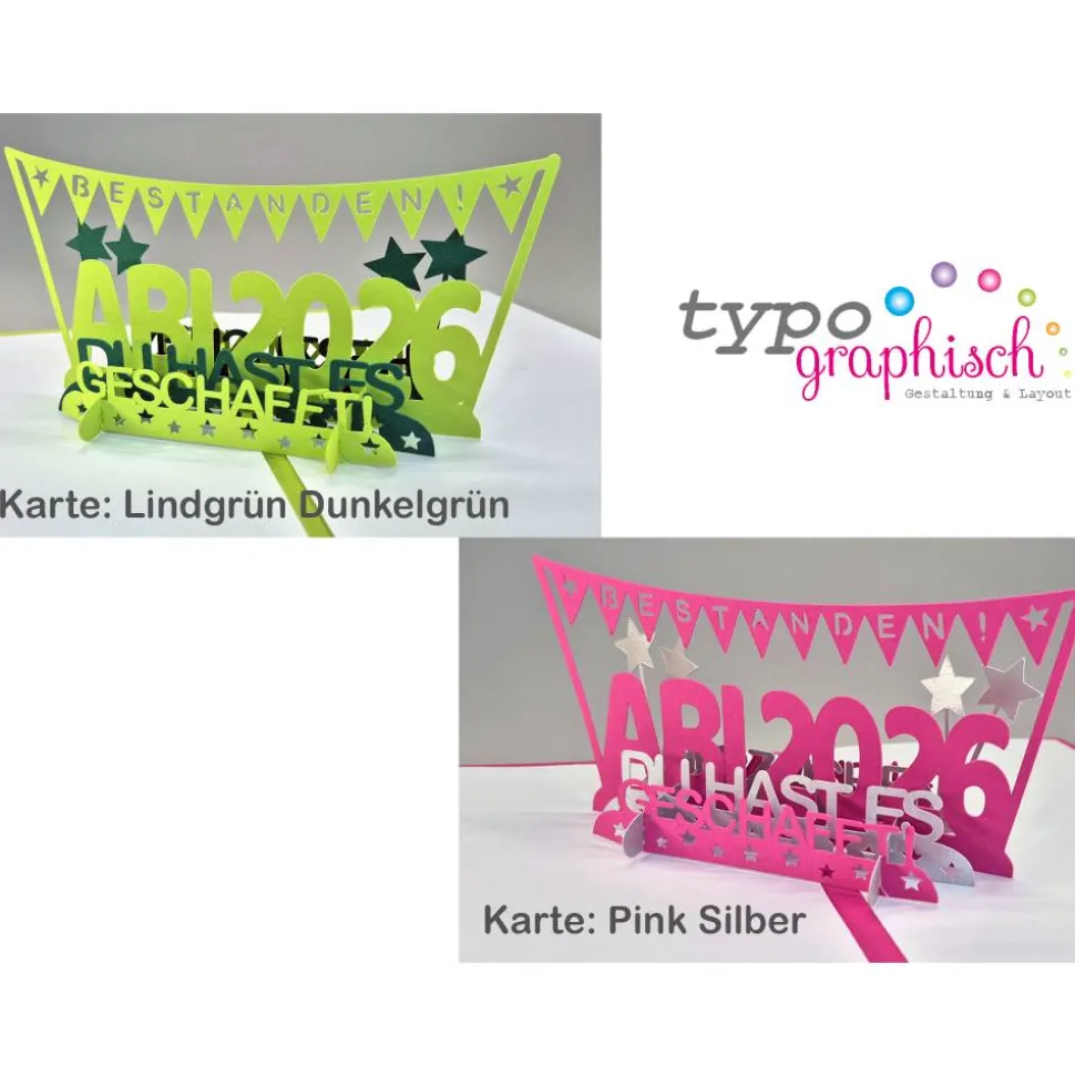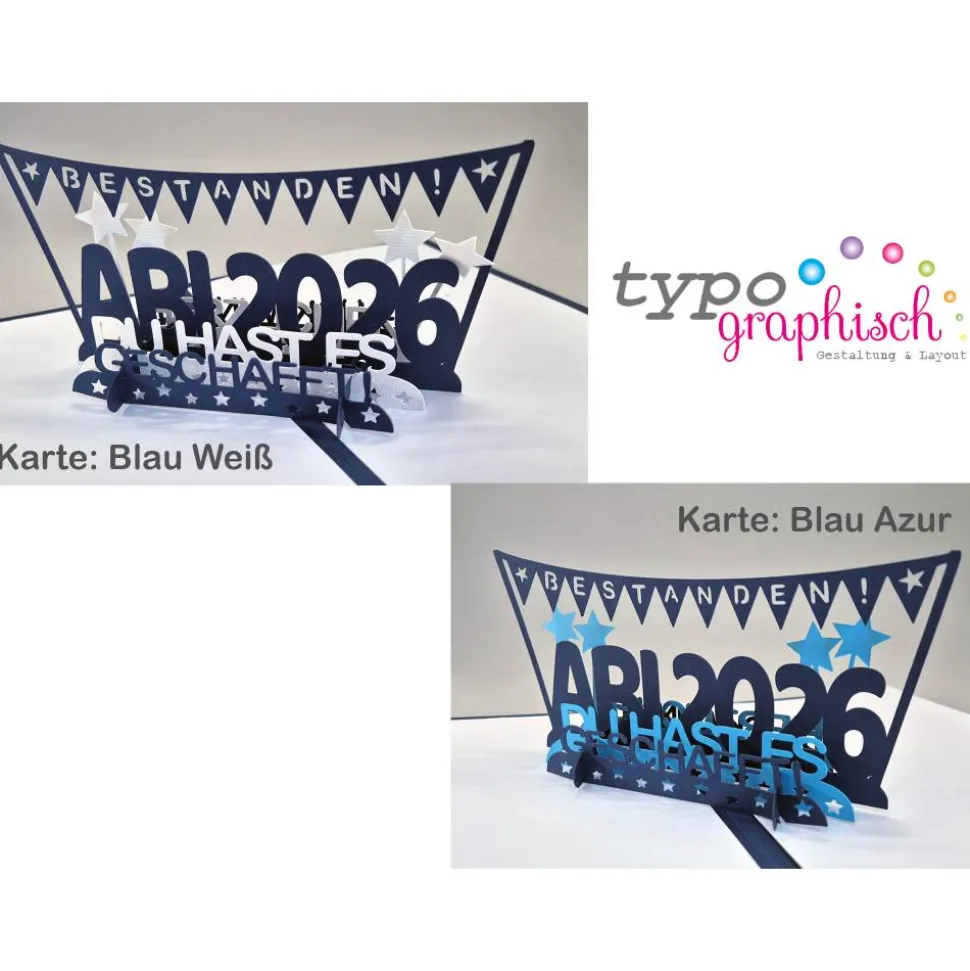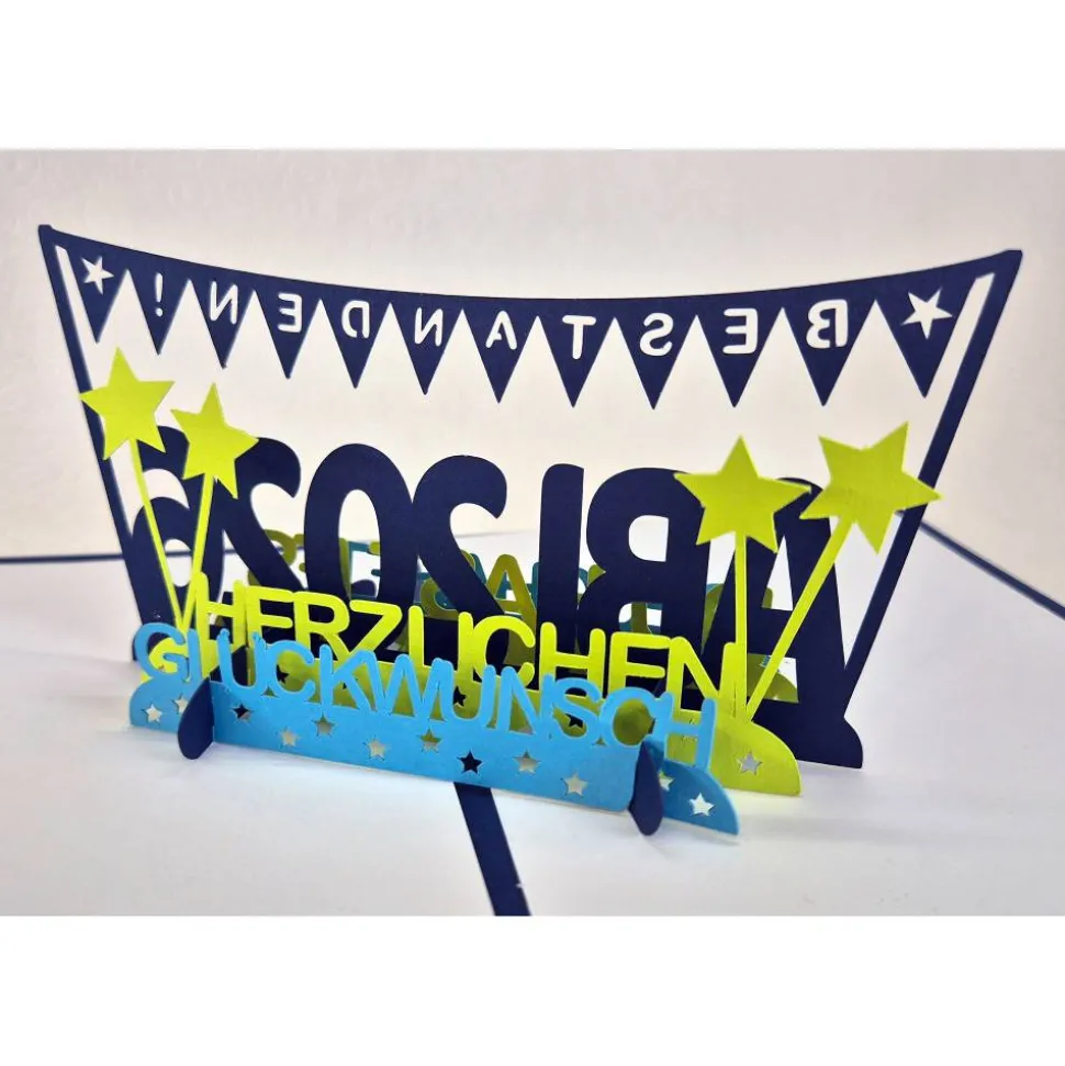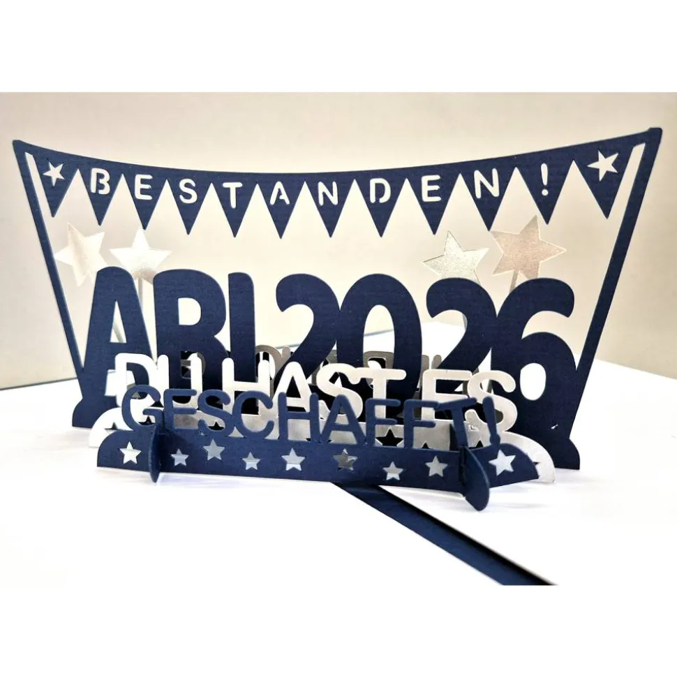 Das Abitur ist ein ganz besonderer Meilenstein – und verdient eine ebenso besondere Karte! Diese liebevoll handgefertigte Pop-up-Karte sorgt beim Öffnen für einen echten Wow-Effekt: Ein kunstvoll gefaltetes 3D-Motiv entfaltet sich und macht die Glückwünsche zu etwas ganz Einzigartigem.