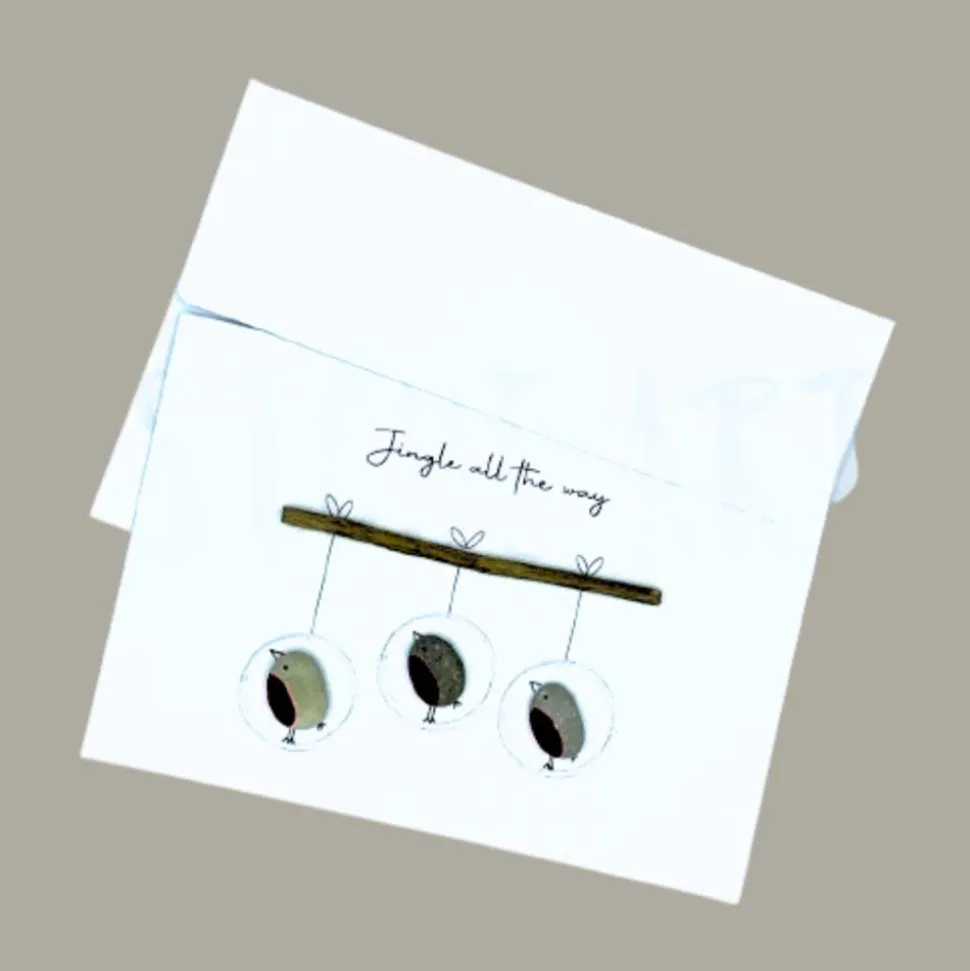 Verschenke in dieser festlichen Saison eine handgemachte Weihnachtskarte „Jingle all the way“ mit liebevoll gestaltetem Mini-Steinmotiv und passendem Umschlag. Diese einzigartige Grußkarte ist perfekt, um persönliche Weihnachtsgrüße stilvoll und individuell zu übermitteln.