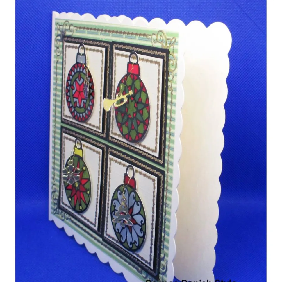 Entdecke diese liebevoll handgemachte Weihnachtskarte mit vier kunstvollen Mandala-Weihnachtskugeln und jeweils einem abnehmbaren Sticker Charm! Jedes Design wurde per Hand mit Alkoholmarkern koloriert und macht die Karte zu einem besonderen Unikat. Du kannst die Sticker Charms einfach abnehmen und vielseitig weiterverwenden.