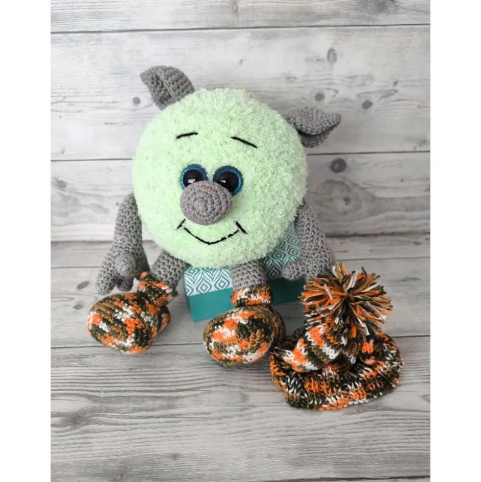 Dieser handgehäkelte Hausgeist Kuzja ist ein einzigartiges und liebevoll gestaltetes Kuschelspielzeug, das Wärme und Gemütlichkeit in jedes Zuhause bringt. Mit viel Sorgfalt und aus hochwertiger, fantasievoller mintgrüner Wolle gefertigt, überzeugt Kuzja durch seine detailreiche Verarbeitung und seinen charmanten Ausdruck.