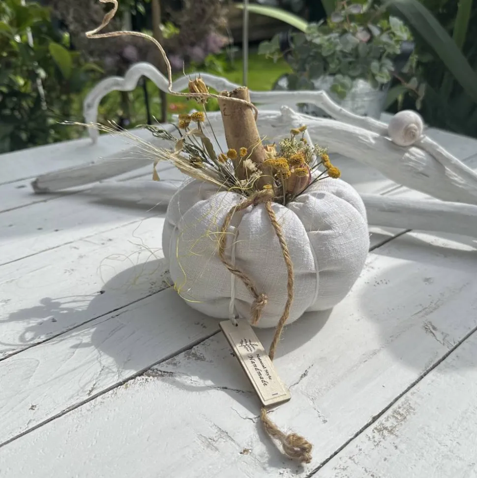 Hol dir ein einzigartiges Deko-Highlight in dein Zuhause: Dieser handgemachte Kürbis aus antikem, fein gewebtem Leinen in Rohweiß und Grau ist die perfekte Landhausdeko für den Herbst. Genieße die natürliche Ausstrahlung und besondere Haptik, denn jedes Stück ist ein echtes Unikat.