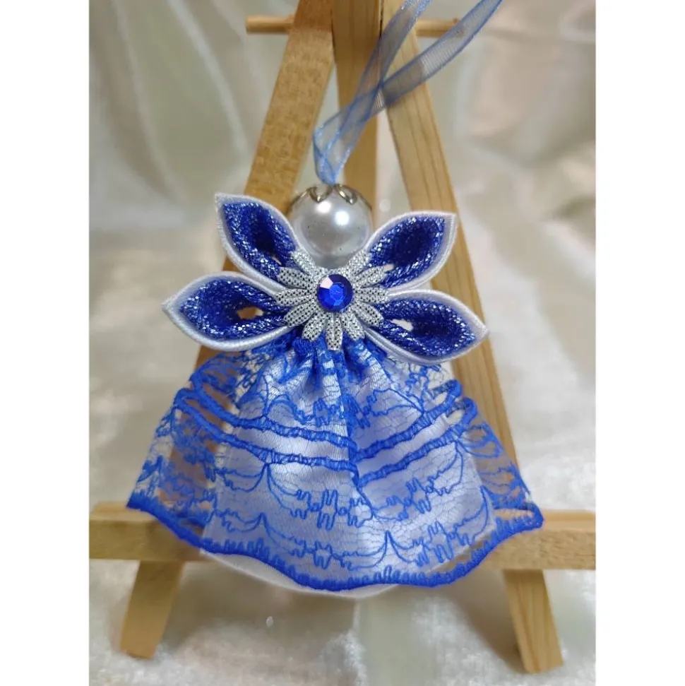 Dieser Engel in leuchtendem Königsblau und Weiß strahlt winterliche Eleganz und Ruhe aus.