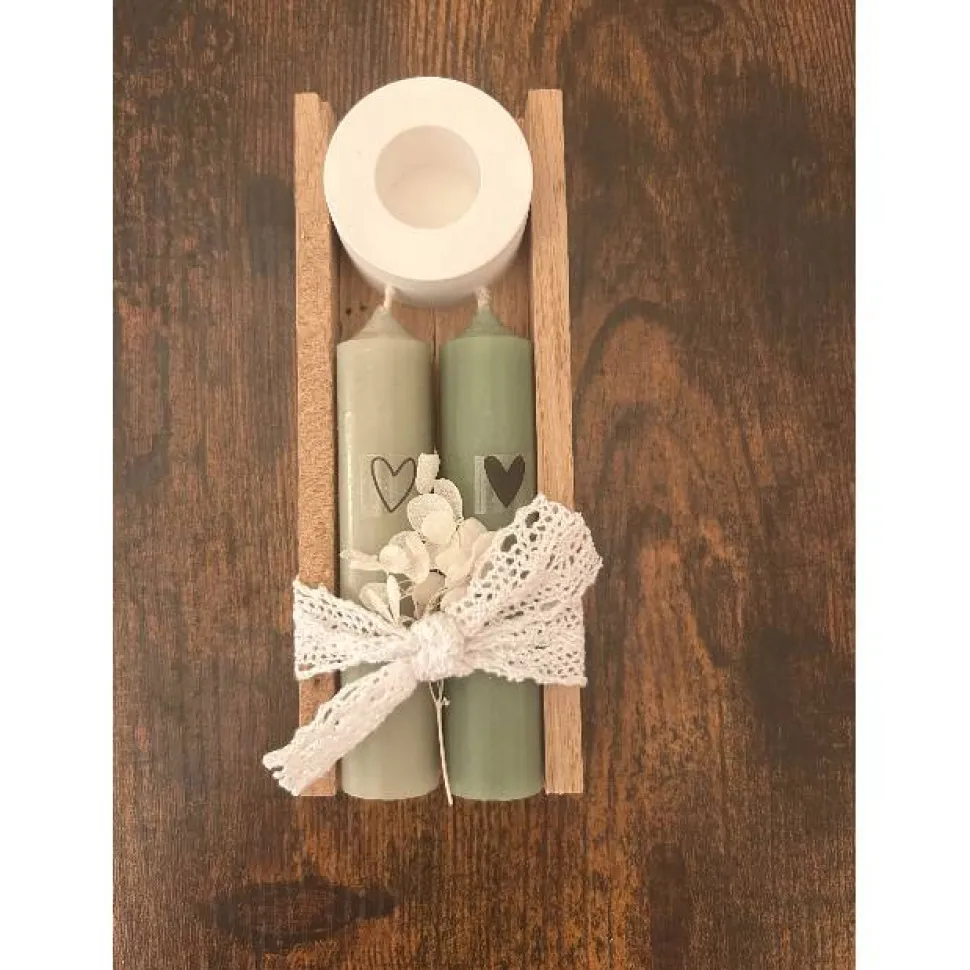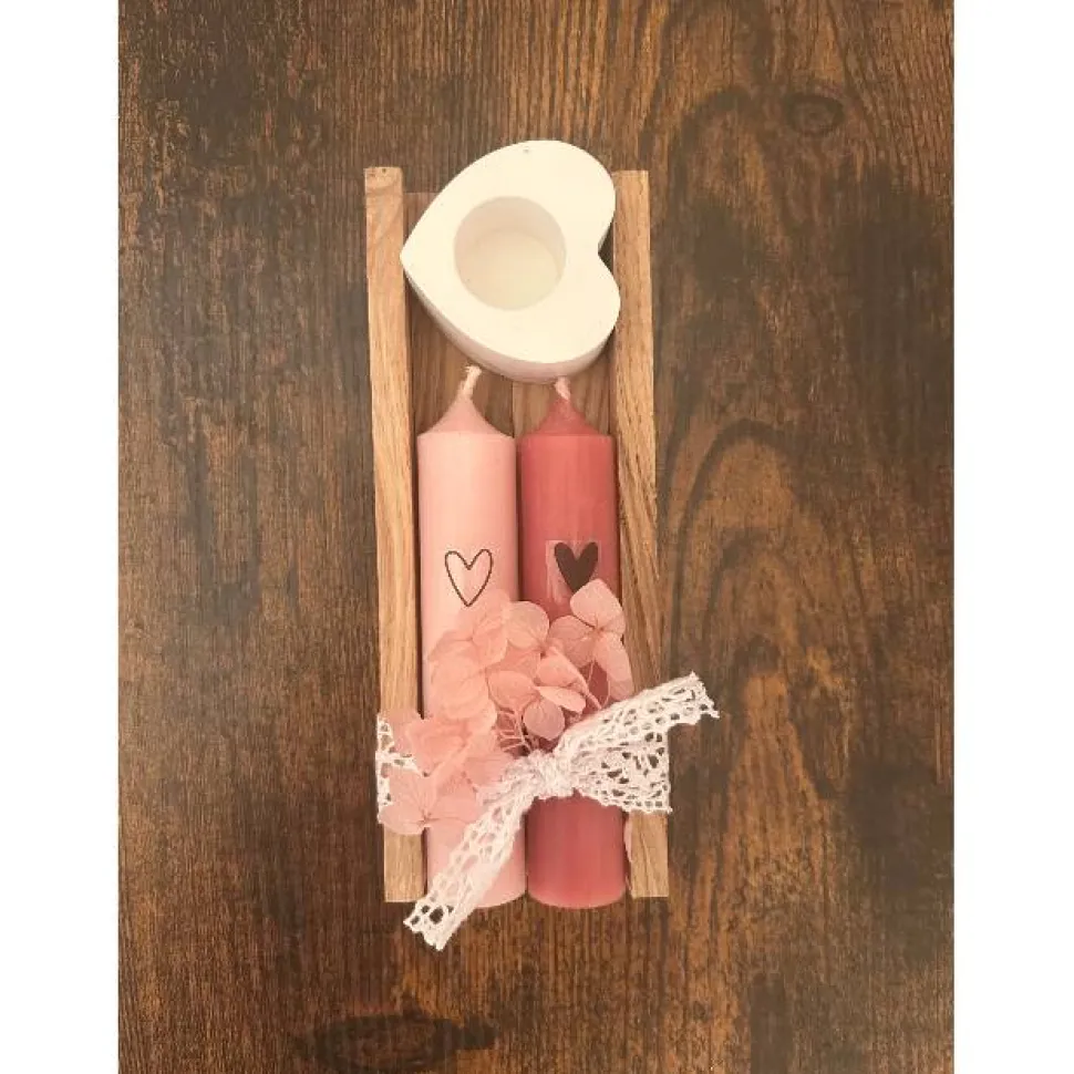Dekoratives Kerzenset mit Holzhalter – handgefertigte Geschenkidee mit Herz