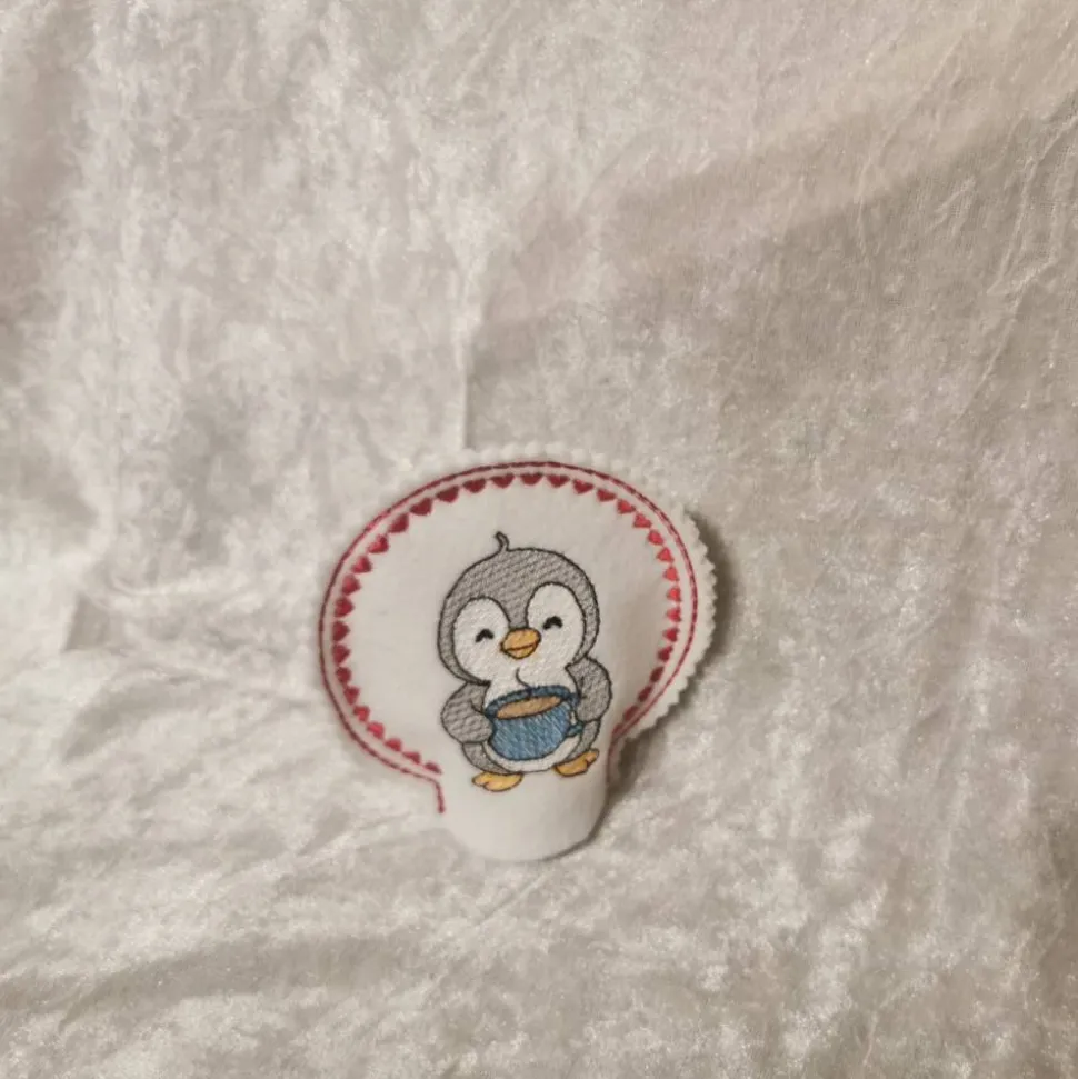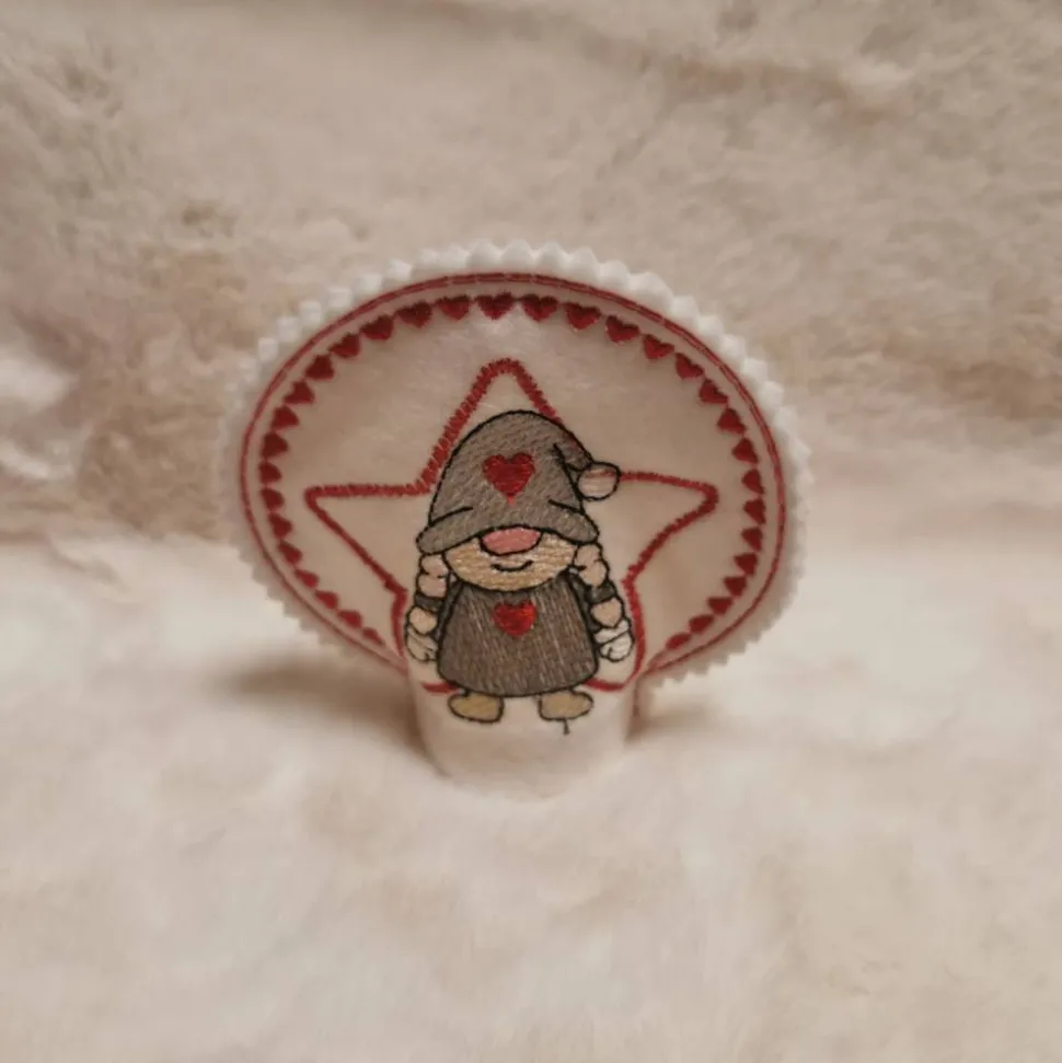 Jedes Teelichtcover wird mit viel Liebe aus weißem Filz (1 mm stark) gefertigt und aufwendig bestickt – wahlweise mit einem süßen Wichtel, einem fröhlichen Pinguin oder einem niedlichen Rentier.