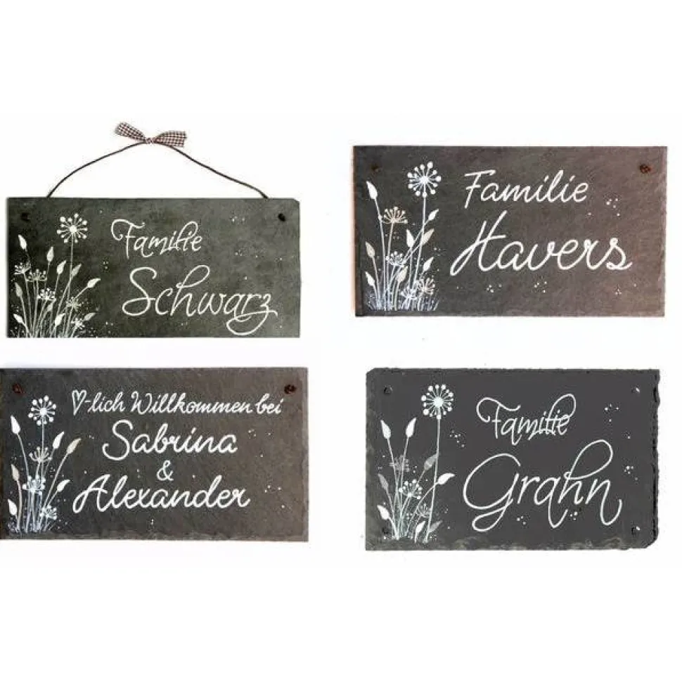 Dein Weg zum personalisierten Schieferschild: Gib einfach Deinen Familiennamen und die gewünschte Schriftart bei der Bestellung an. So erhältst Du ein exklusives, individuelles Geschenk, das garantiert Eindruck macht und lange Freude bereitet.