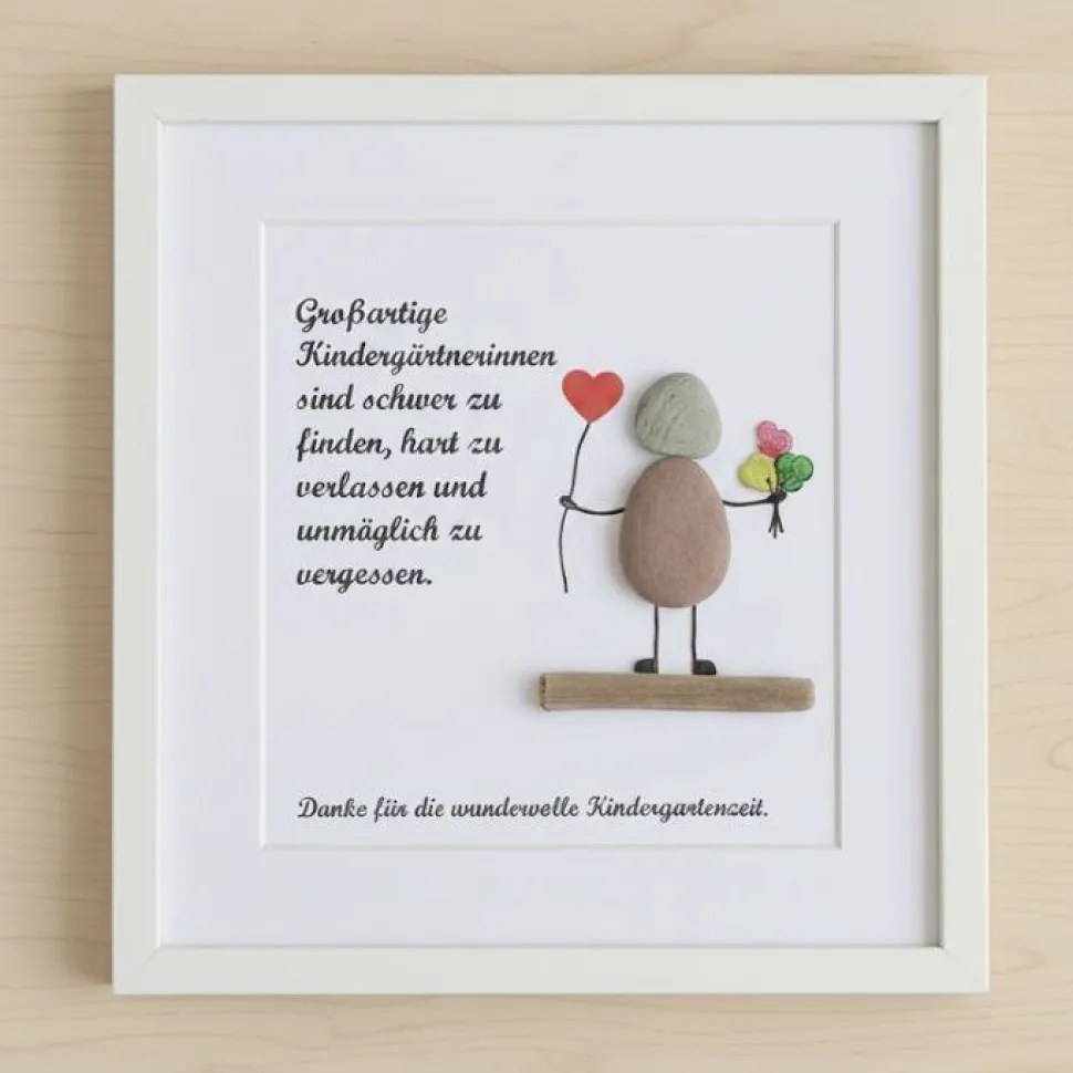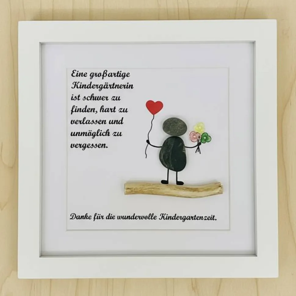 Ein wunderschönes handgefertigtes Steinbild als Dankeschön für Erzieherinnen – perfekt als persönliches Abschiedsgeschenk zum Kindergartenende.