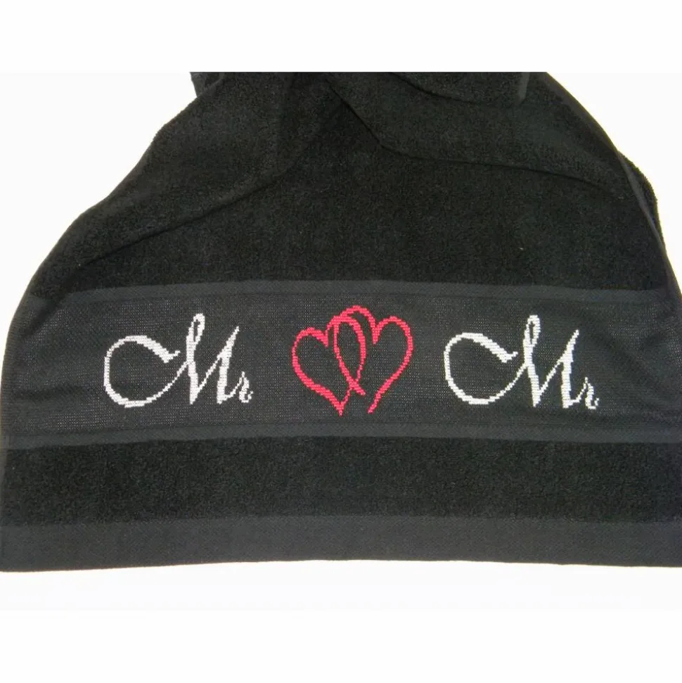 Lieferumfang: Sie erhalten 1 Handtuchtuch, 50 x 100 cm, handbestickt mit dem Schriftzug „Mr“ und „Mr“ verbunden durch 2 Herzen in rot
