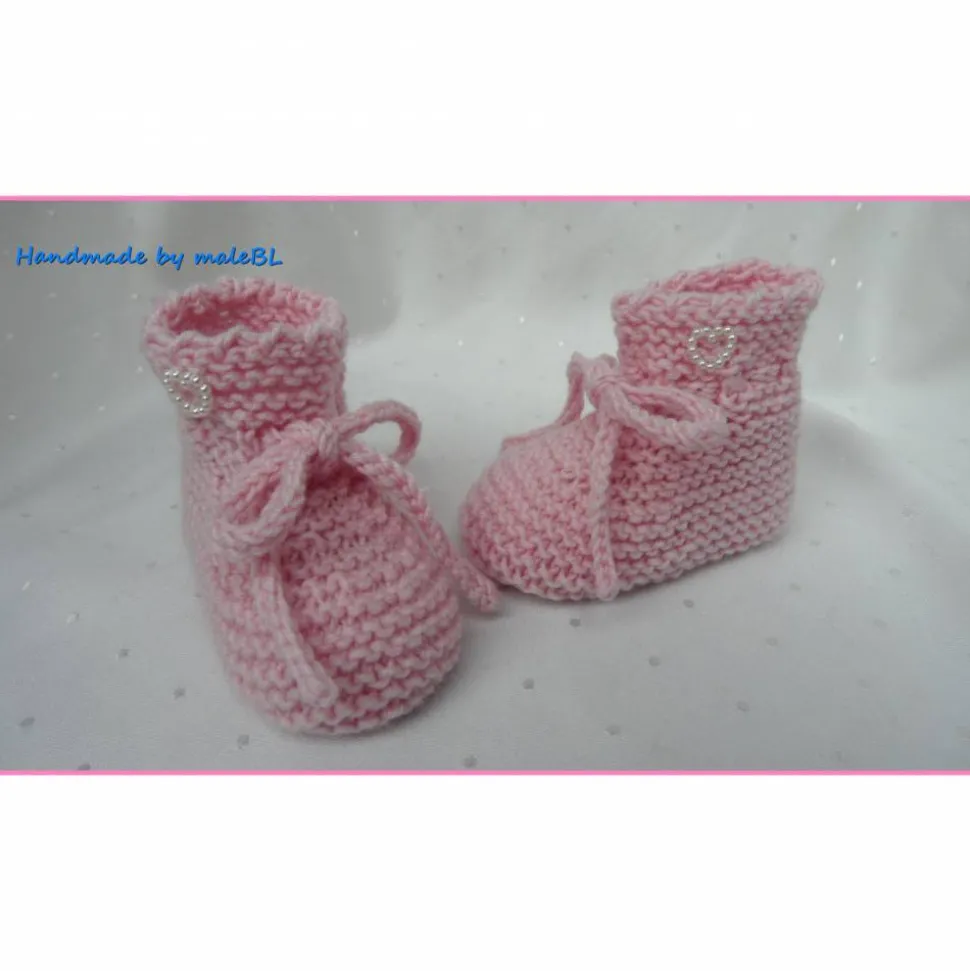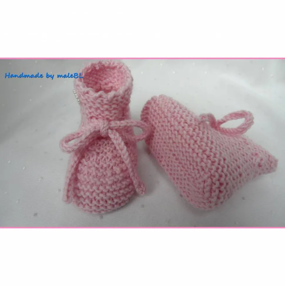 Handgestrickte rosa Babyschuhe aus Merinowolle – Neugeborenenschuhe zum Binden