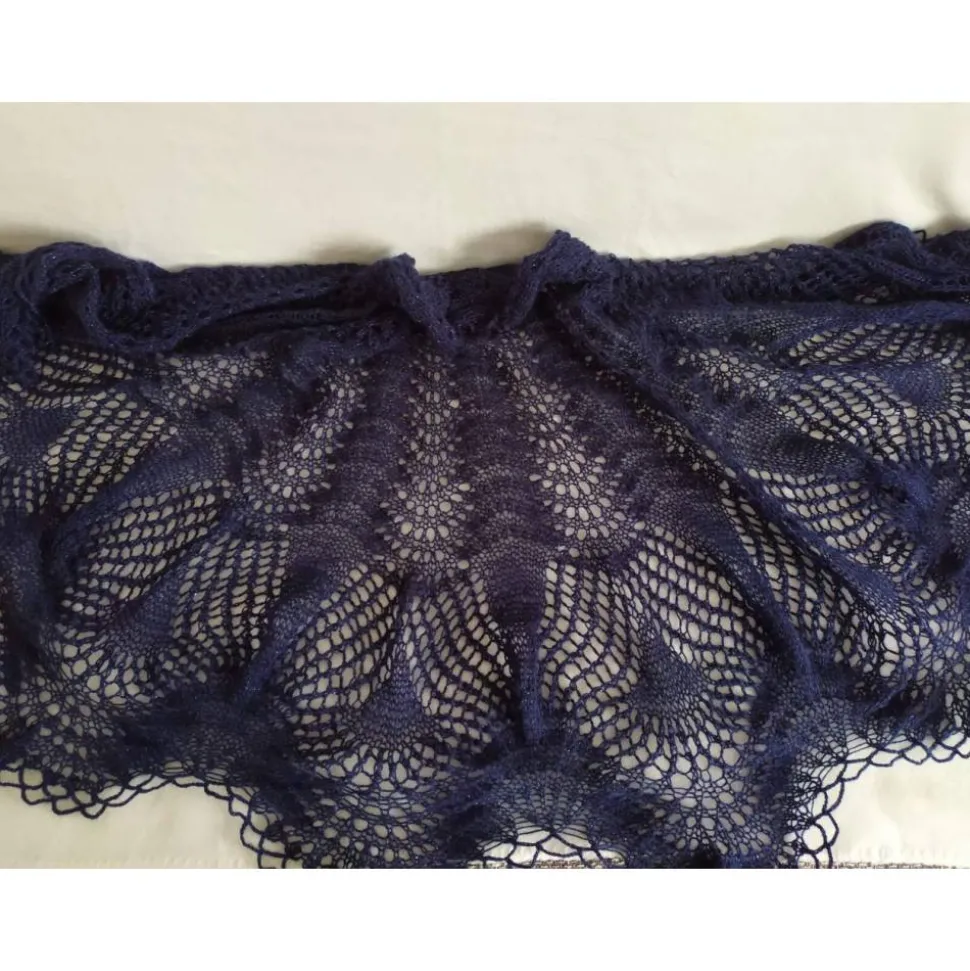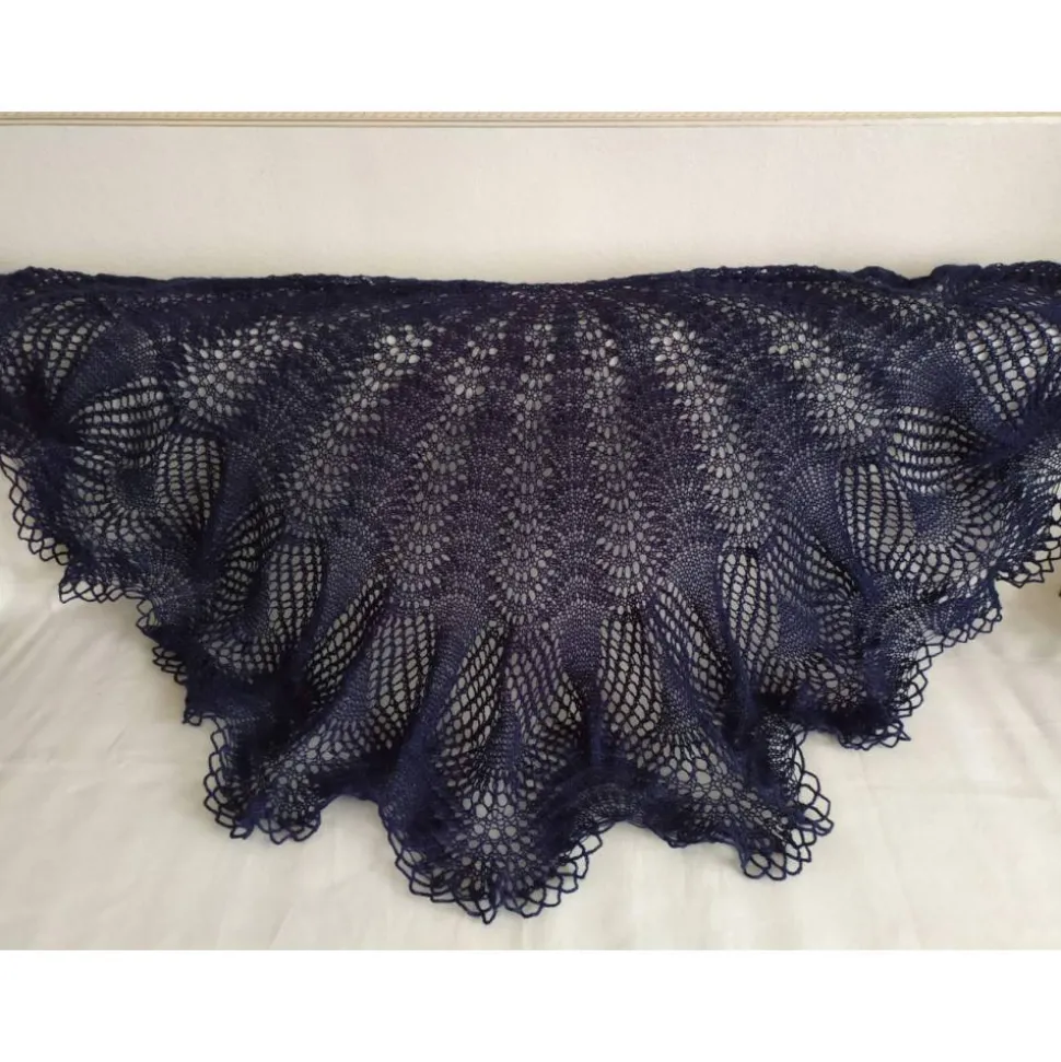 Dieses elegante, handgestrickte Tuch „Sultan“ besticht durch seine edle dunkelblaue Farbe und einen feinen blauen Lurexfaden, der dem gesamten Stück einen dezenten, königlichen Glanz verleiht.