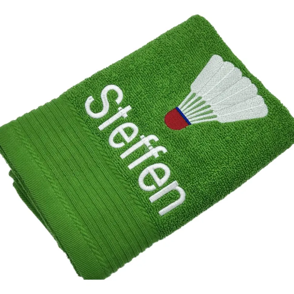 Du kannst dir eine aus 18 Handtuchfarben aussuchen und entscheidest dich für eine von 4 Schriftarten.