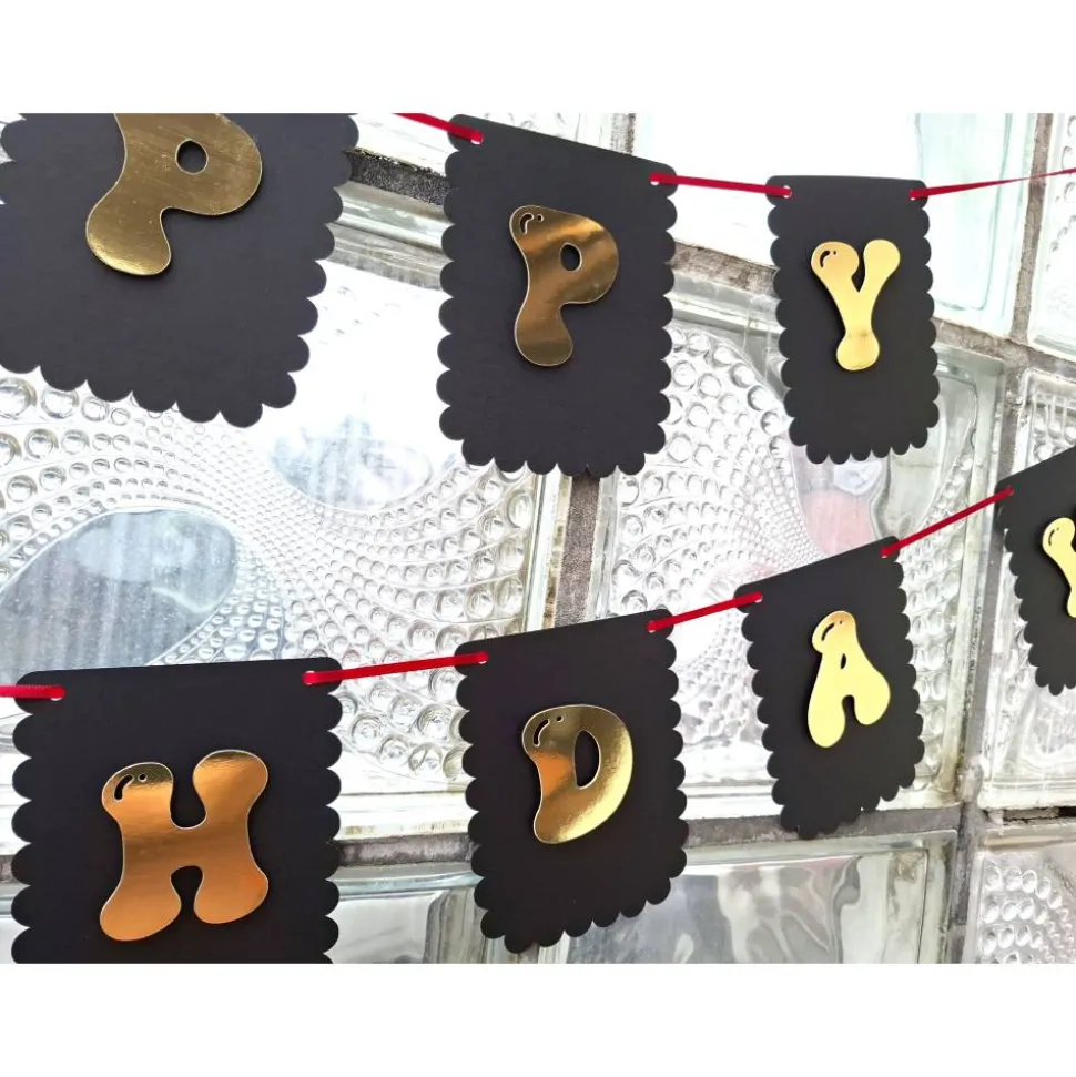 Happy- Birthday Girlande – Handgemacht mit 3D Effekt und Spiegelglanz.