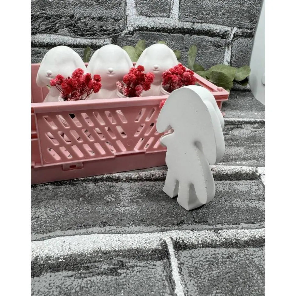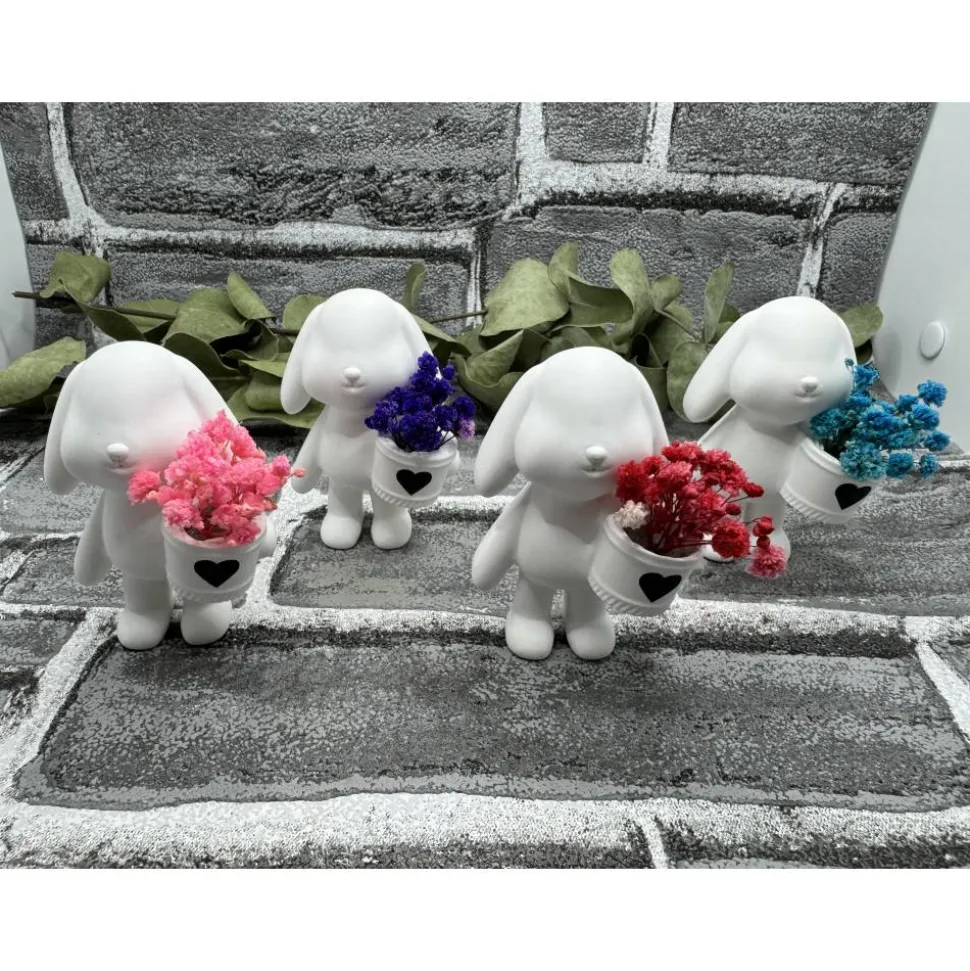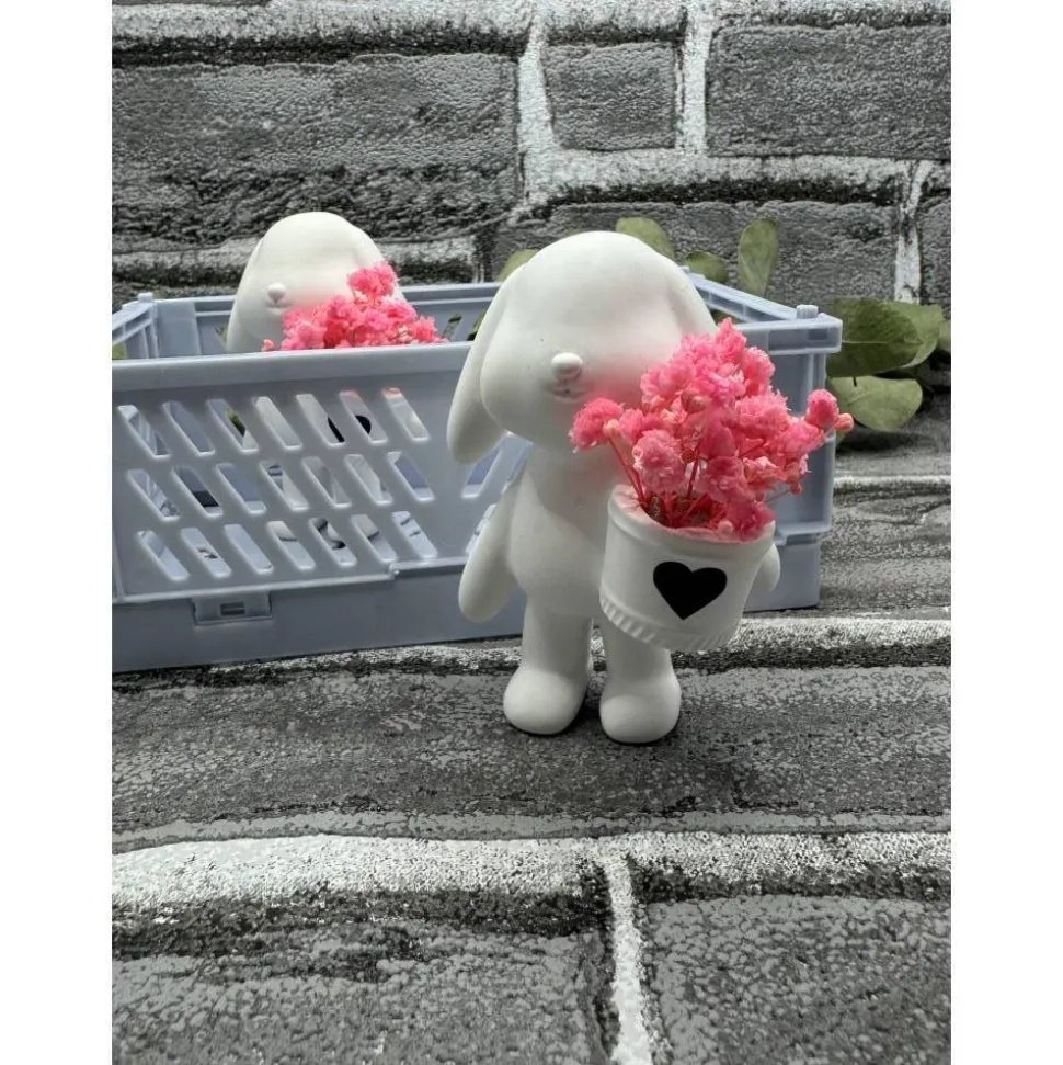 Kleiner Hase mit Körbchen und Trockenblumen