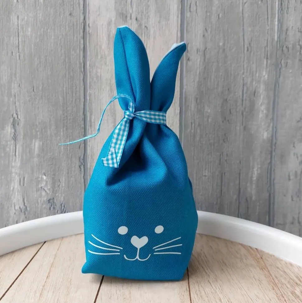 Das Hasengesicht habe ich mit hellblauer Flexfolie angebracht.