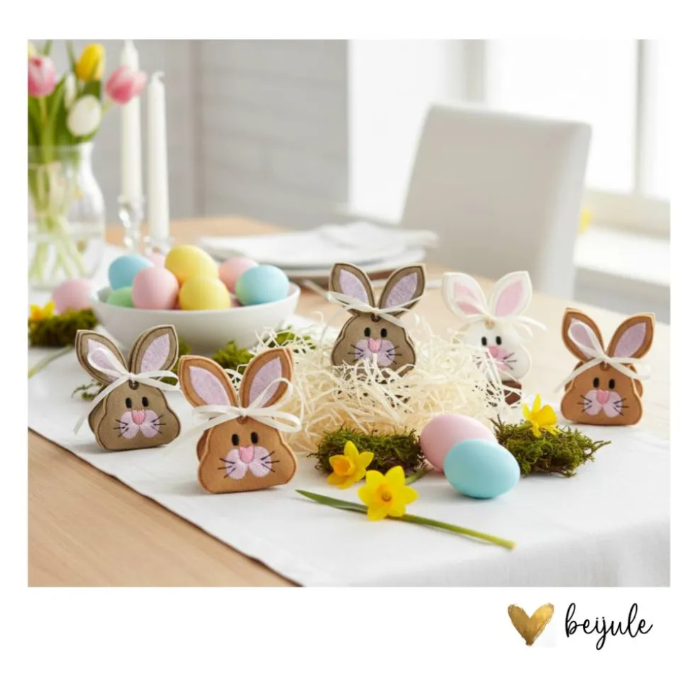Durch die detailreiche Stickerei und die harmonischen Naturtöne fügt sich der Hasenkopf wunderbar in jede Frühlings- und Osterdekoration ein – schlicht, elegant und mit viel Liebe zum Detail gefertigt.