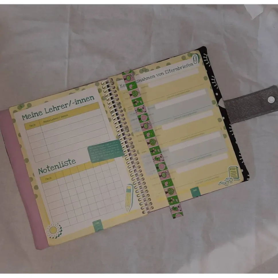 Achtung! Diese Hülle ist passend für ein Hausaufgabenheft mit Spiralbindung, da viele Schulen mittlerweile eigene Aufgabenhefte drucken lassen. Ich kann sie aber nochmal neu für normale Hefte anfertigen.