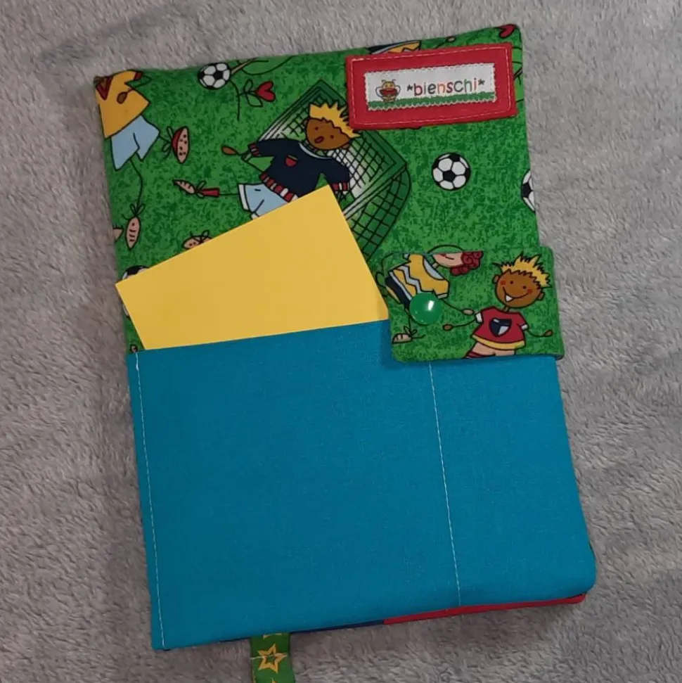 Sie kann gewaschen und gebügelt werden, es passen Hefte im Hochformat rein.