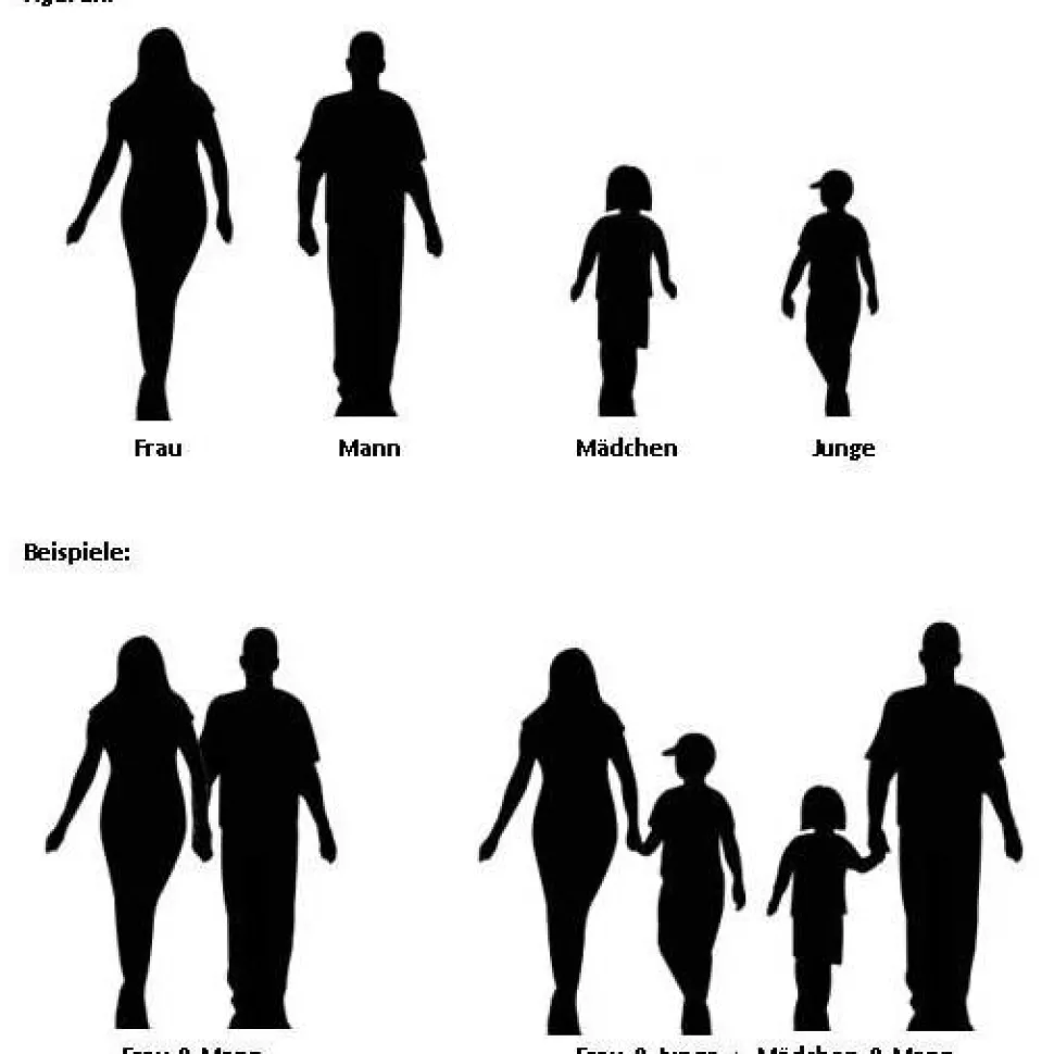 z.B. Anna (Frau), Sebastian (Junge) + Lisa (Mädchen), Frank (Mann)