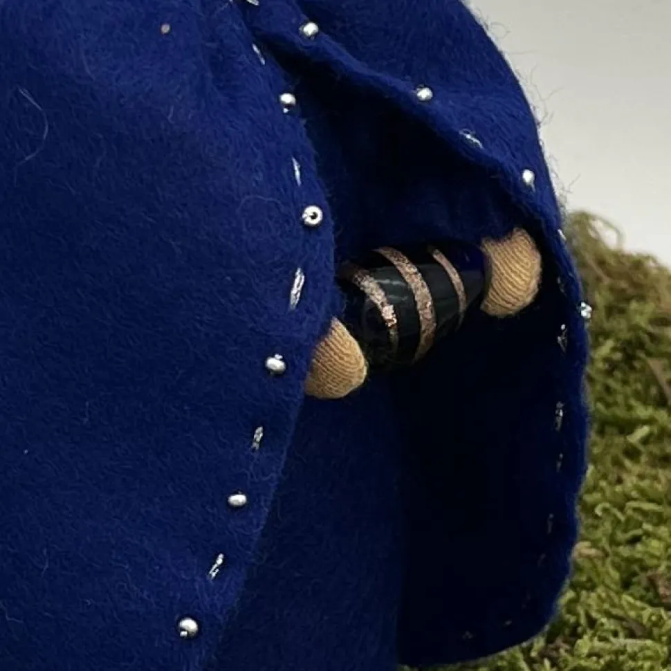 Die Püppchen ist unten geschlossen und für einen guten Stand unten mit feinem Dekokies und der Rest mit reiner Schurwolle gefüllt.