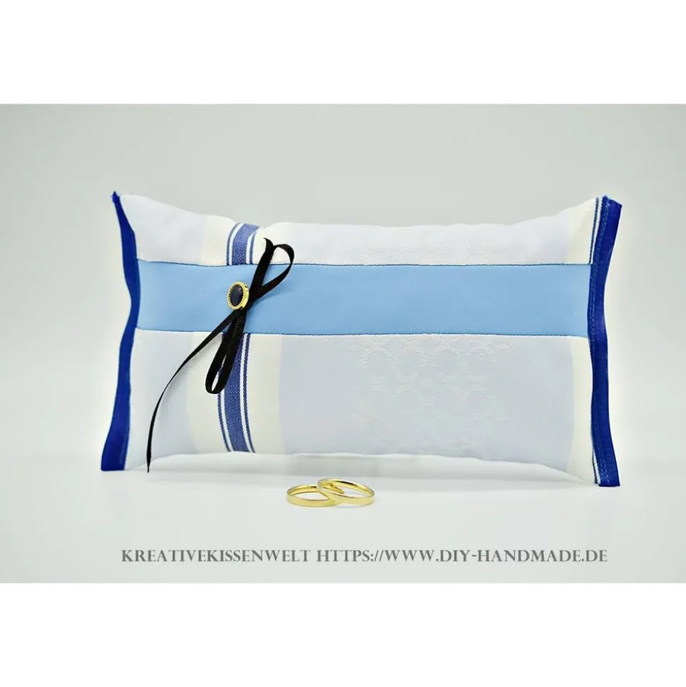 Dieses rechteckige Ringträgerkissen ist ein handgemachtes Unikat aus Franken, gefertigt von KreativeKissenwelt. Mit einer Größe von ca. 22×12 cm bietet es ausreichend Platz für Eure Ringe und bleibt als wunderschönes Andenken an den besonderen Tag erhalten.