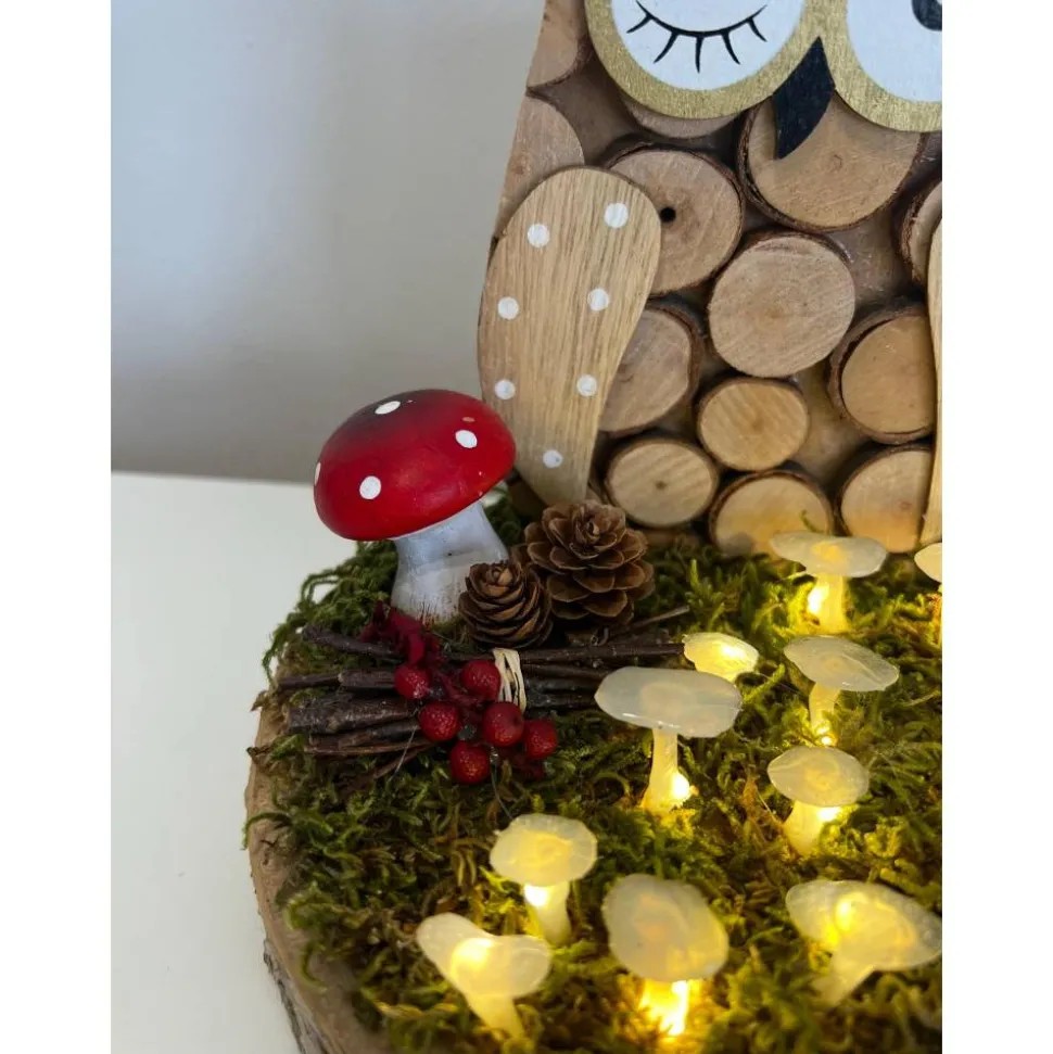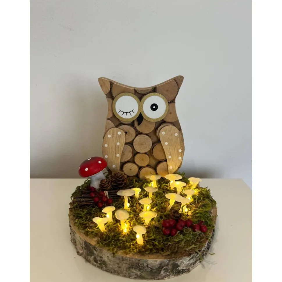 Hier verkaufe ich ein wunderschönes Herbstgesteck auf einer Baumscheibe mit Ledpilze, dass ich mit sehr viel Liebe zum Detail selbst hergestellt habe 🙂