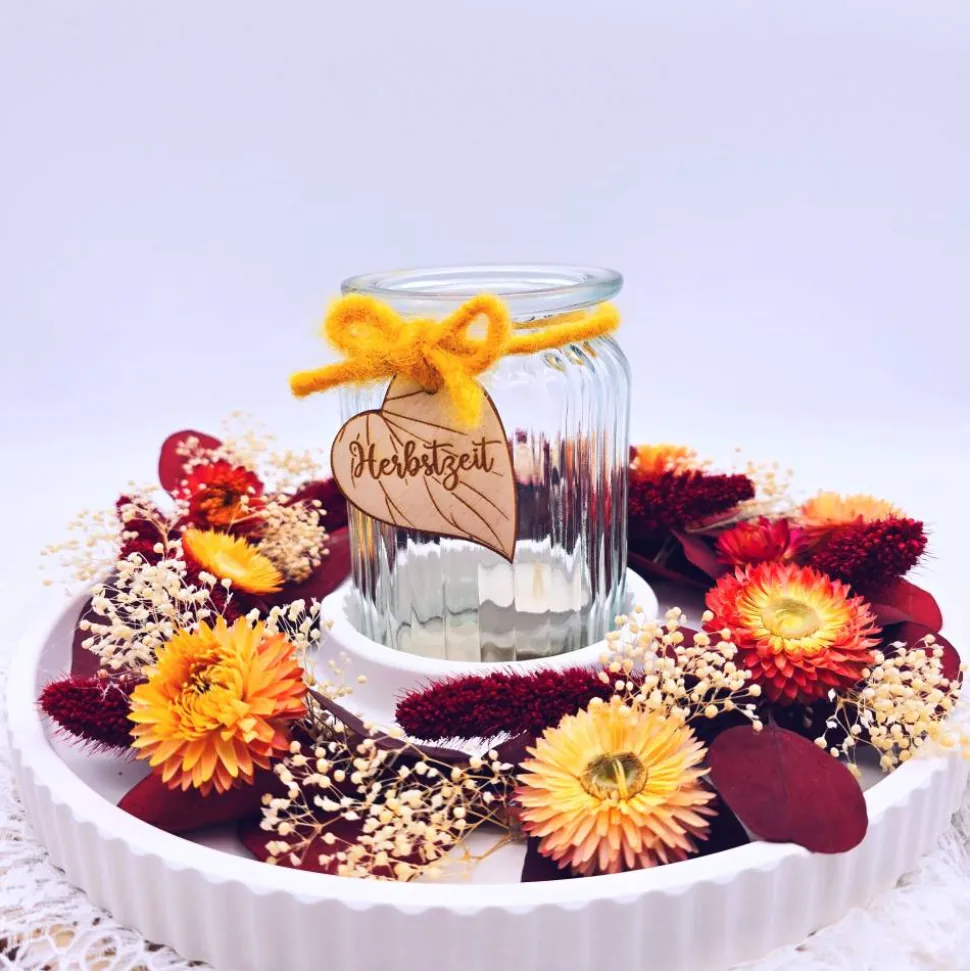 Verleihe deinem Zuhause eine gemütliche Herbstatmosphäre mit unserem handgefertigten Herbstkranz. Dieser wunderschöne Kranz besteht aus ausgewählten Trockenblumen in herbstlichen Farben und bringt die Farben der Herbstsaison in dein zu Hause. Der Kranz ist ideal als Tischdekoration und wird durch ein stilvolles Windlicht in der Mitte perfekt ergänzt. Ob als Dekoration für das Erntedankfest, Familienfeiern oder einfach nur, um den Herbst zu feiern – unser Herbstkranz ist vielseitig einsetzbar und ein echter Blickfang.