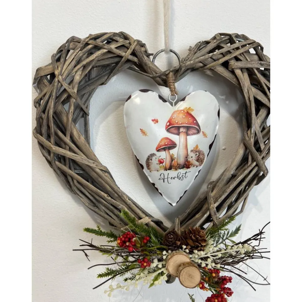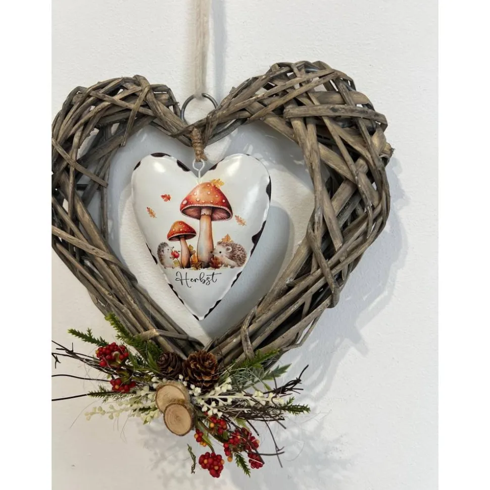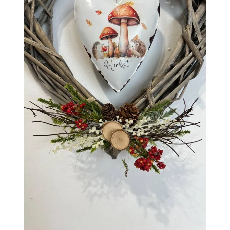 Der schöne Kranz ist mit einem Metallherz und verschiedener Herbstdeko verziert und mit ganz viel Liebe zum Detail selbst hergestellt 🙂