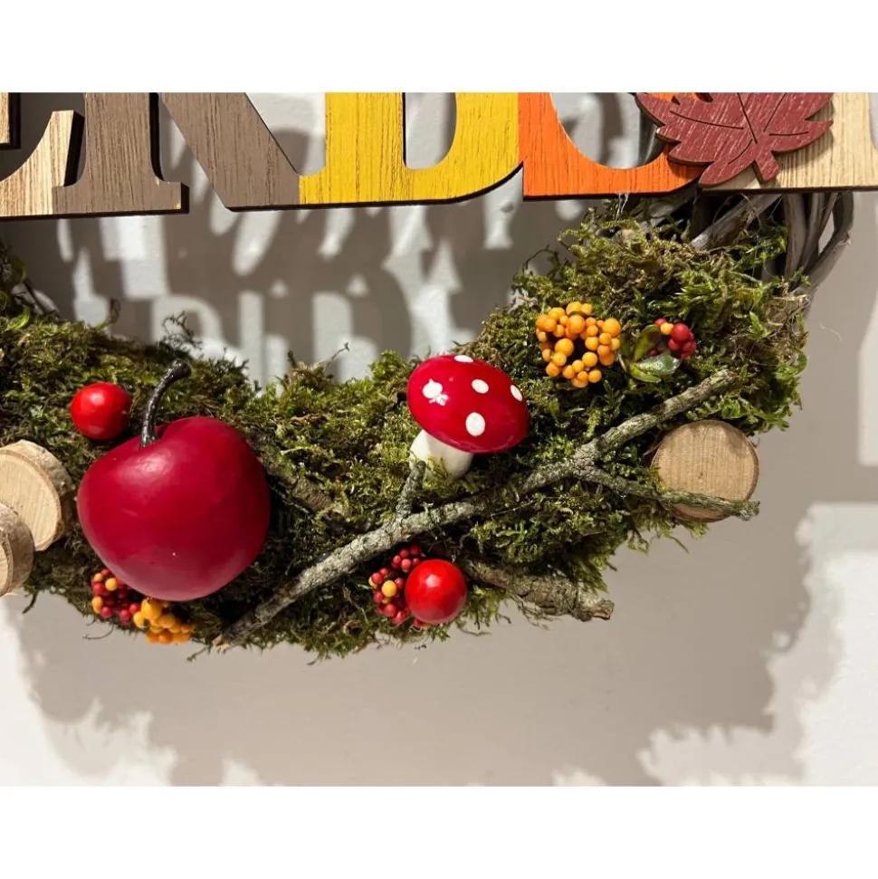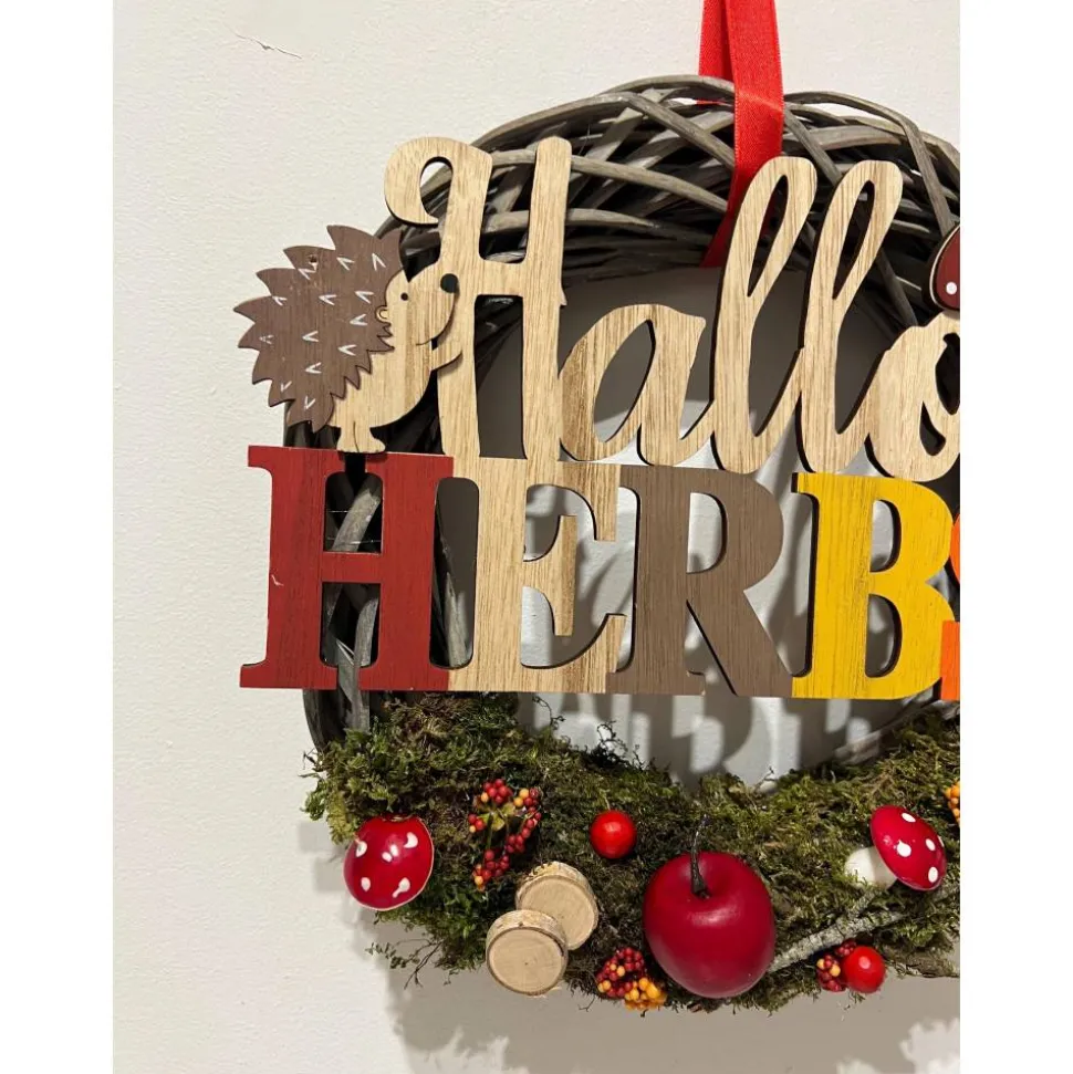 Der Kranz ist mit verschiedenen Herbstdekorationen verziert und mit ganz viel Liebe zum Detail selbst hergestellt 🙂