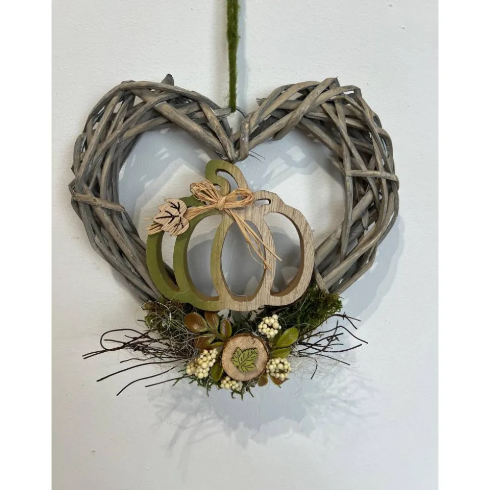 Der schöne Kranz ist mit einem Kürbis und verschiedener Herbstdeko verziert und mit ganz viel Liebe zum Detail selbst hergestellt 🙂