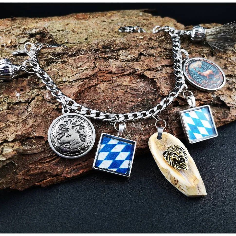 Es besteht aus Bayernanhängern,verziertem Horn, Schmuckanhängern und Wildbart-Anhängern mit Dachshaaren.