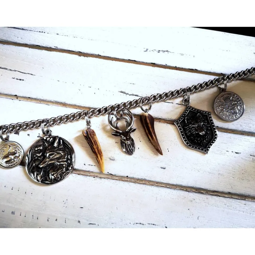 Mit Edelstahlelementen und Hornspitzen verziert, ist dieses imposante Charivari ein echter Blickfang.