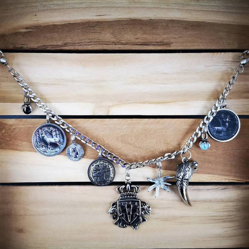 Falls du das Charivari erweitern möchtest, bieten wir Anhänger auch separat an. Bitte beachte, dass aufgrund der Verwendung von Naturprodukten wie Horn und Stein Variationen in Größe, Form und Farbe auftreten können, was jedes Stück zu einem einzigartigen Unikat macht.
