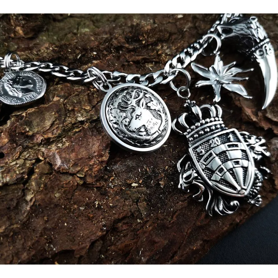 Das Charivari ist durch seine großen Edelstahlanhänger nicht nur optisch beeindruckend, sondern mit einem Gewicht von ca. 130 Gramm auch massiv verarbeitet.