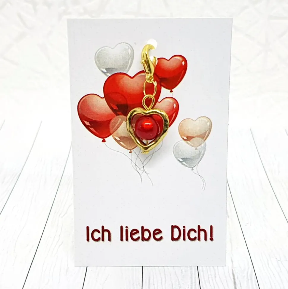 Dieser kleine Anhänger ist mehr als ein Schmuckstück – er ist eine liebevolle Botschaft. Das goldfarbene Metallherz enthält eine auffallende, schimmernde 3D Perle in Rot. Dank praktischem Karabiner lässt sich der Anhänger vielseitig befestigen und kommt an einer stilvollen Schmuckkarte zu dir.