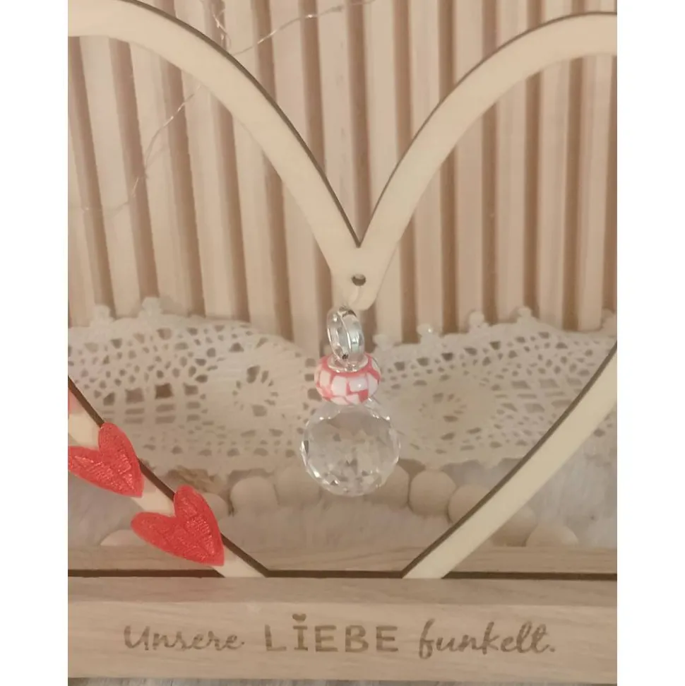 Dieses wunderschöne Herz aus Birkenholz mit dem Schriftzug Liebe oder einem funkelnden Glasprisma würde zum Teil handgefertigt und bringt jedes Herz zum Strahlen.