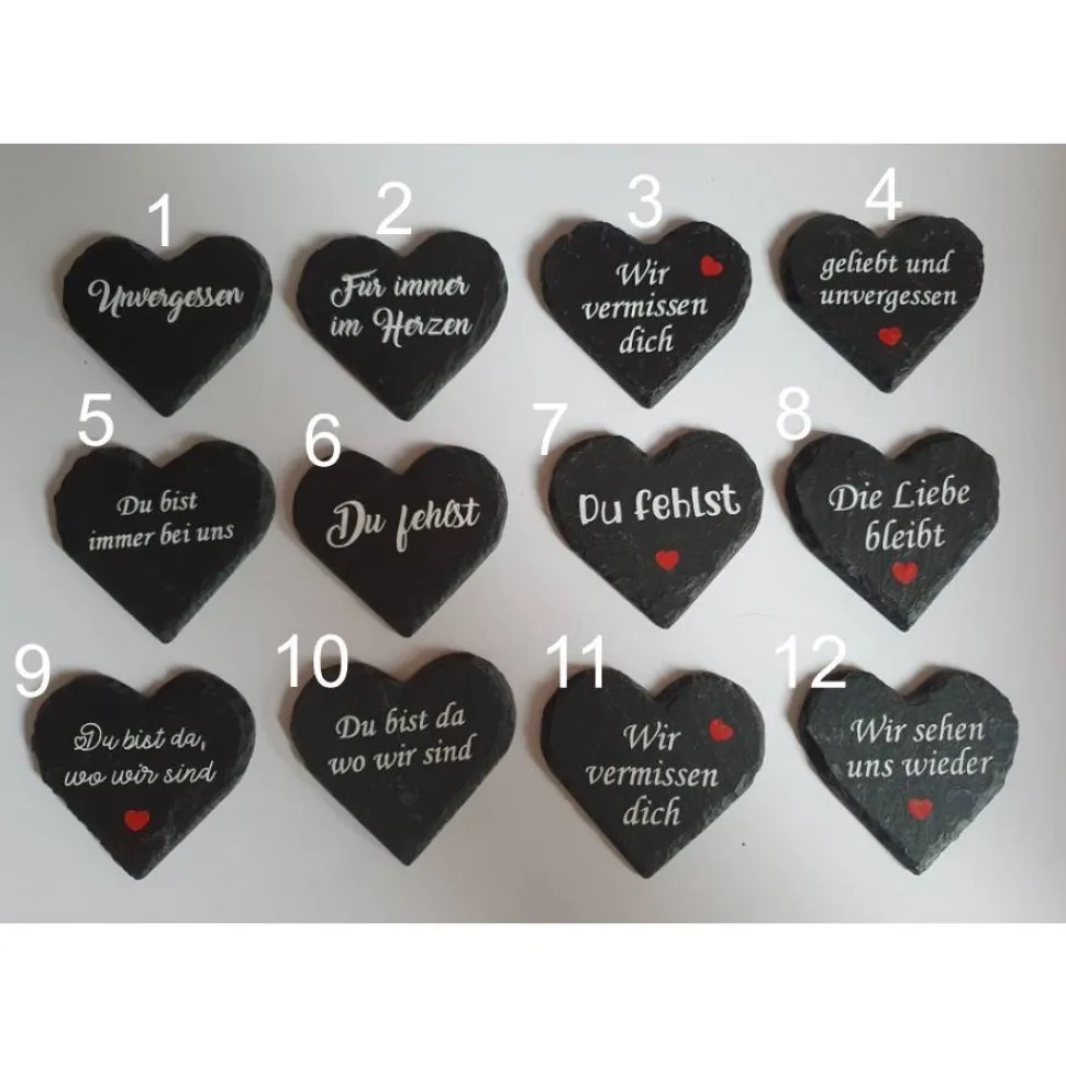Unser Herz aus Schiefer ist einzigartig und eine besonders liebevolle Grabdeko oder ein Geschenk für trauernde Familienangehörige und Freunde.