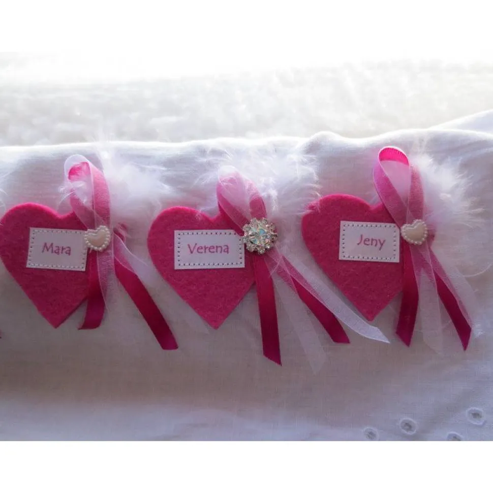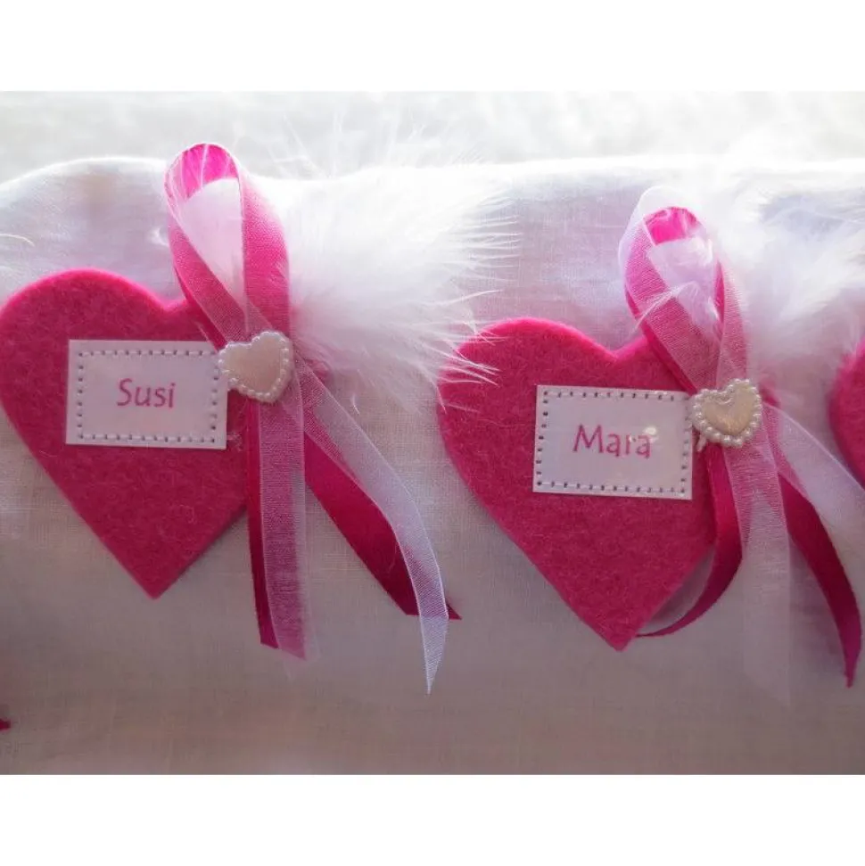 Die Wunschaufschrift ist einlaminiert, Maße vom Filzherz: ca. 5 x 5 cm