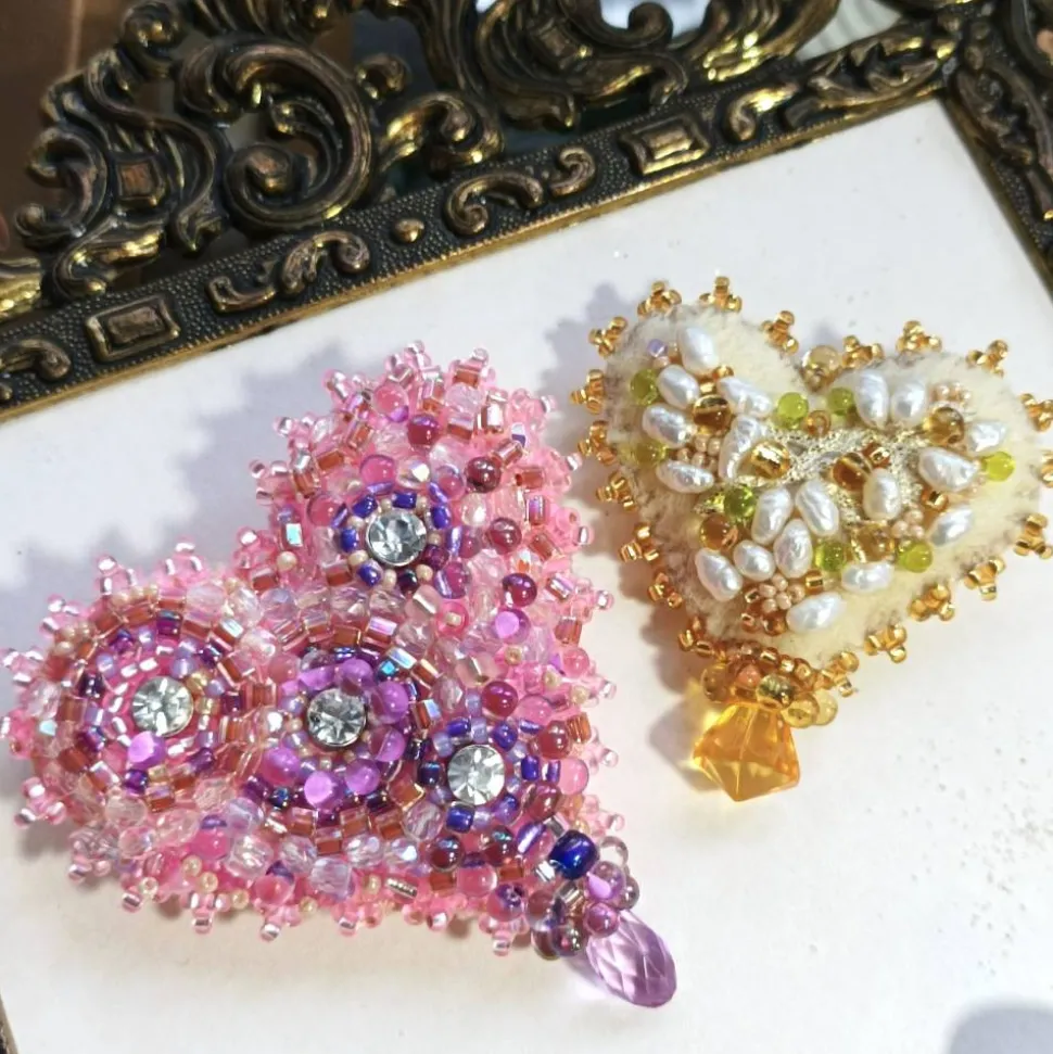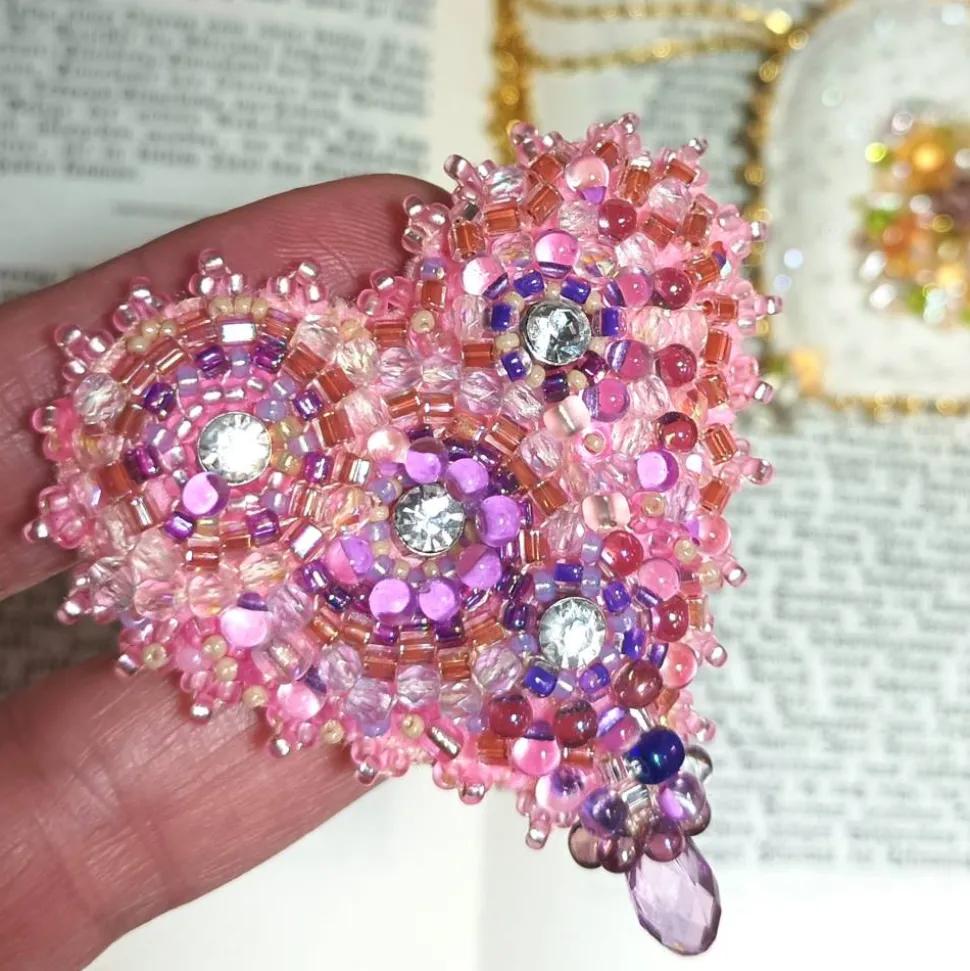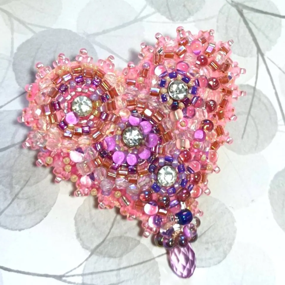 Entdecke die einzigartige Herz Brosche, handbestickt und in zarten Nuancen von rosa und pink gestaltet. Diese liebevoll von mir gefertigte Brosche kombiniert funkelnde Strasssteine und hochwertige Glasperlen zu einem echten Unikat. Die verschiedenen Glasperlen sorgen für ein faszinierendes Spiel aus Licht und Farbe, perfekt für deinen individuellen Stil.