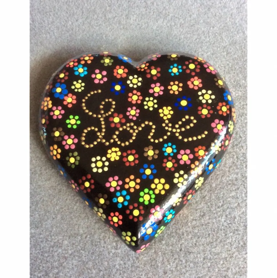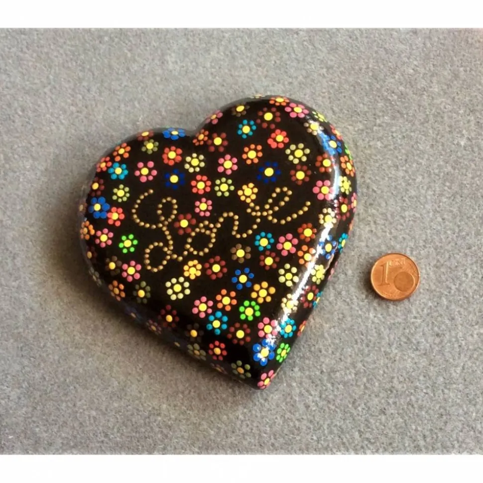 Handarbeit / Unikat – Stein in Herzform gegossen und nach eigenem Entwurf mit Acrylfarben bemalt.
