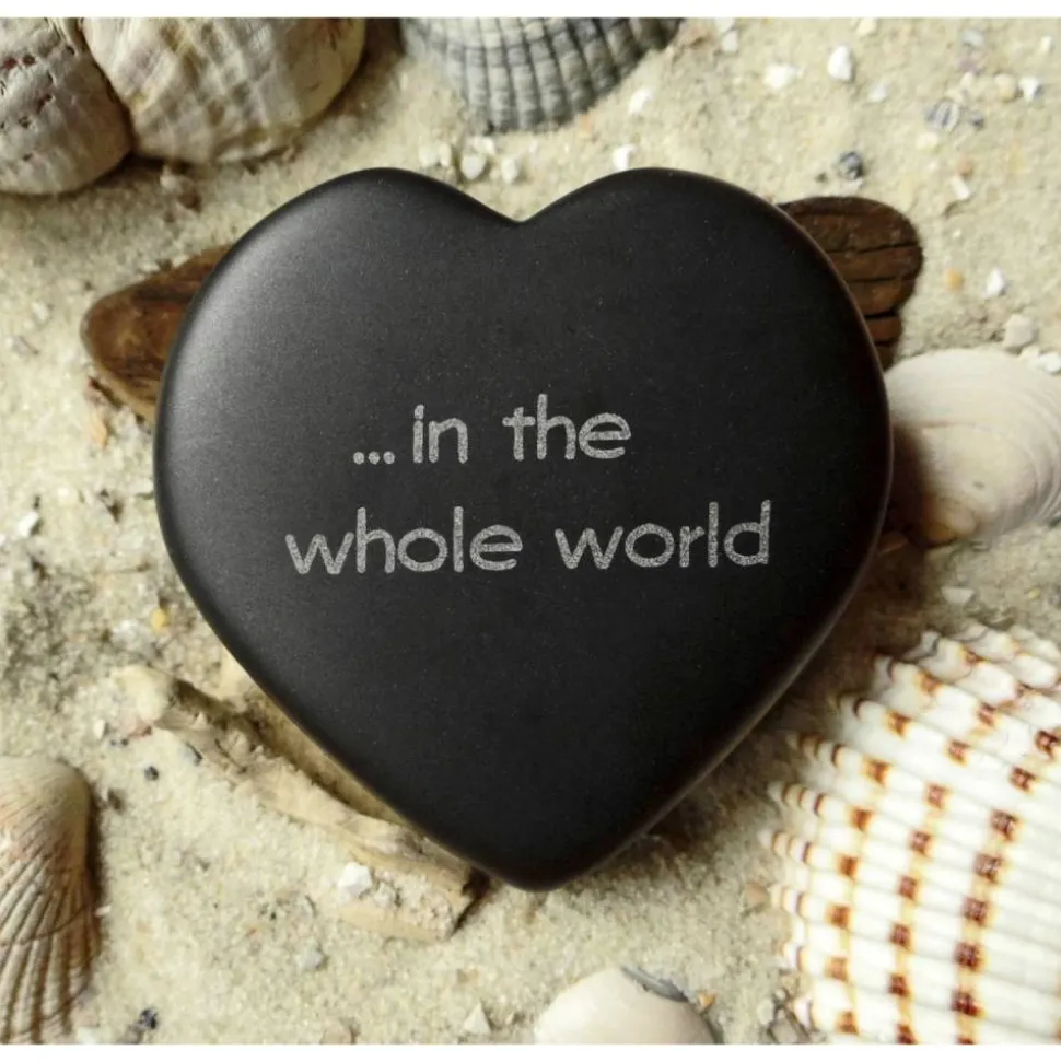 Nach der deutschen Gravur ‚Für die beste Mama … auf der ganzen Welt‘ folgt hier nun die englische Version des beliebten Herzens aus Basalt mit der Inschrift ‚For the best mom …‘ und dazu passend auf der Rückseite ‚… in the whole world‘ graviert.