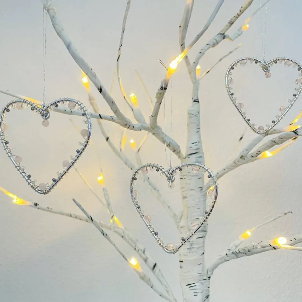 Der kleine Herz Anhänger mit Rosenquarz-Perlen eignet sich perfekt, wenn man eine Kleinigkeit schenken will, oder man kann es mit einem Geldgeschenk kombinieren. Als Deko zu Hause sehen die Herzen hängend an Ästen oder ganz klassisch auf dem Weihnachtsbaum schön aus. Man kann sie auch als Glücksbringer z.B. neben dem Bett oder im Büro aufhängen, wo es die Gedanken unbewusst auf die schönen Wirkungen des Steins lenkt. Der Herzanhänger schenkt langfristig Schönheit und Achtsamkeit in den Alltag und bringt das Zuhause zum Strahlen.