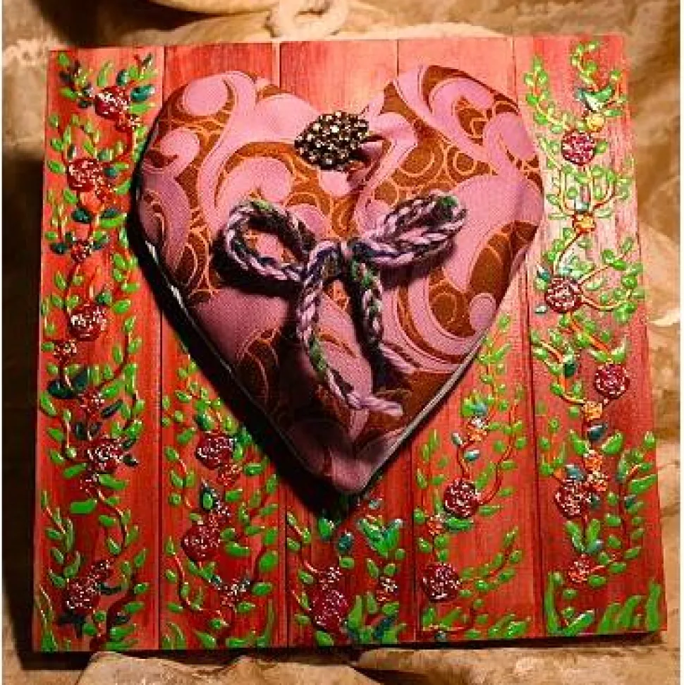 Größe: 24 x 24 cm, ca. 1,5 cm tief, wo das Herz angebracht ist ist die Tiefe ca. 4 cm.