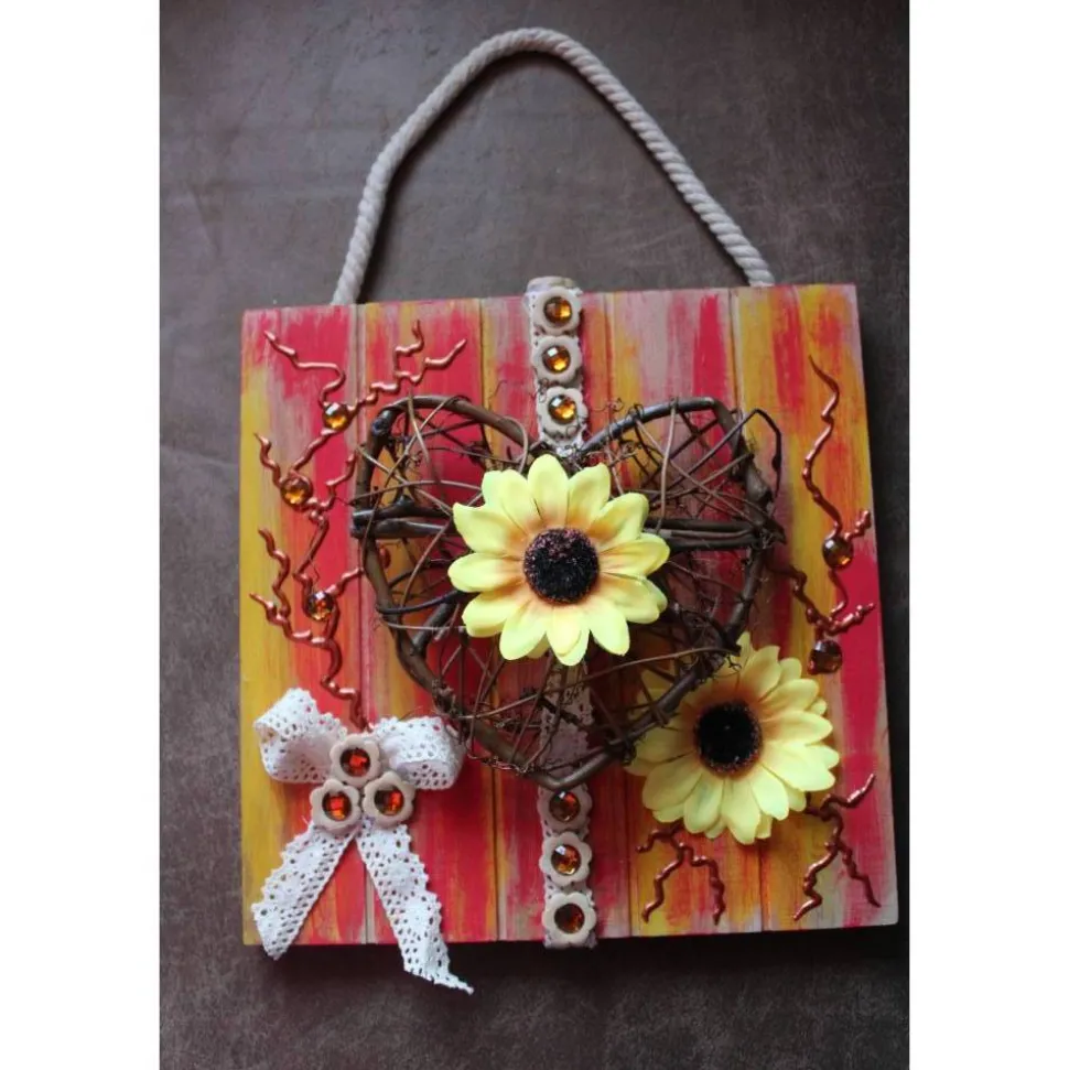 Acrylfarbe, Weidenherz, Kunstblumen, Holz, Stoff,