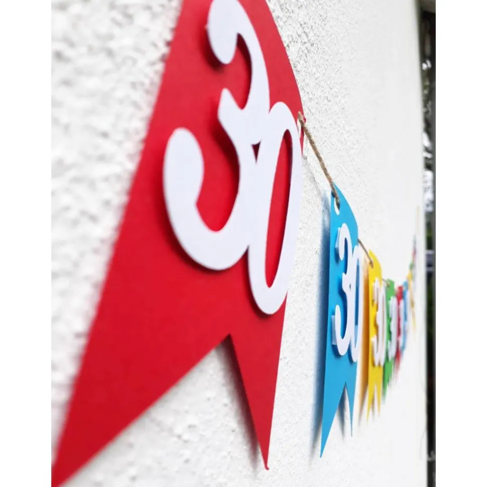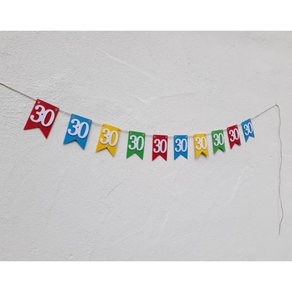 Die Wimpel sind etwa 13,5 cm hoch und 9,5 cm breit. Insgesamt ist die Girlande etwa 1,30 m lang.