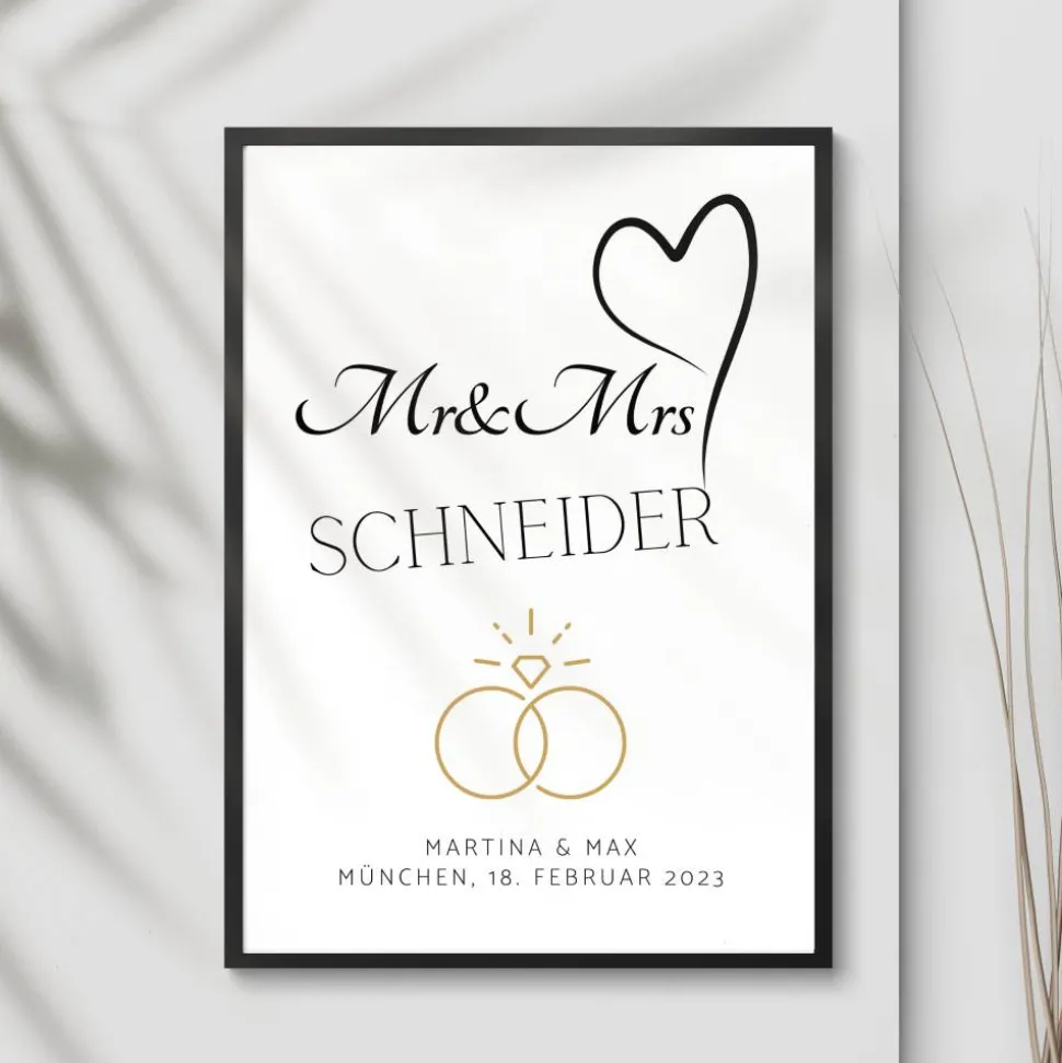 Hier erhälst Du ein Posterdruck in DIN A4 Format, für das Brautpaar zur Hochzeit als Urkunde oder Poster zum Einrahmen als Wanddekoration und Geschenkidee.