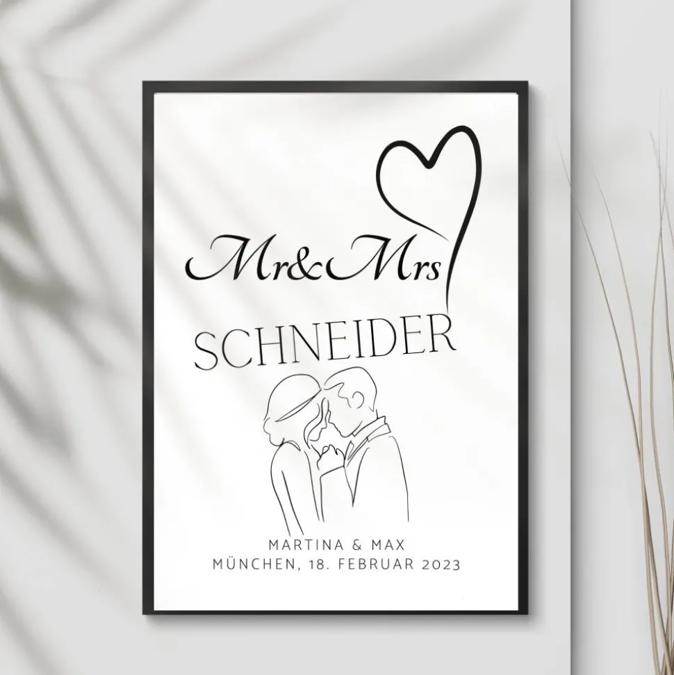 Hier erhälst Du ein Posterdruck in DIN A4 Format, für das Brautpaar zur Hochzeit als Urkunde oder Poster zum Einrahmen als Wanddekoration und Geschenkidee.