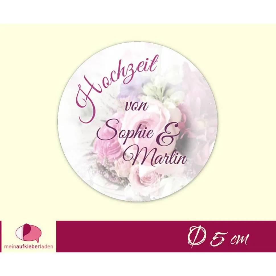 Hochzeitsaufkleber | Blumenstrauß  rosa