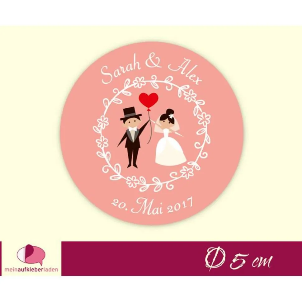 Hochzeitsaufkleber | Brautpaar mit Luftballon Herz –  rosa
