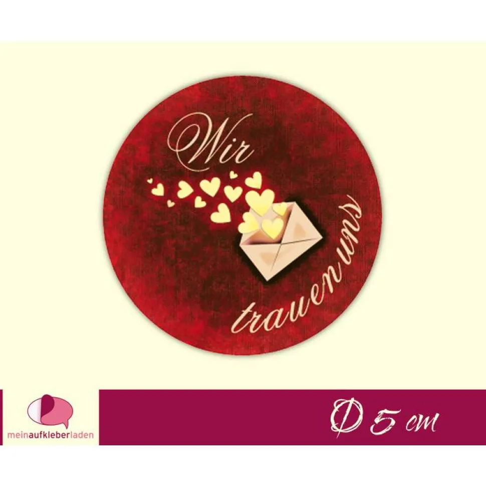 Hochzeitsaufkleber | Liebesbrief mit Herzen – Wir trauen uns
