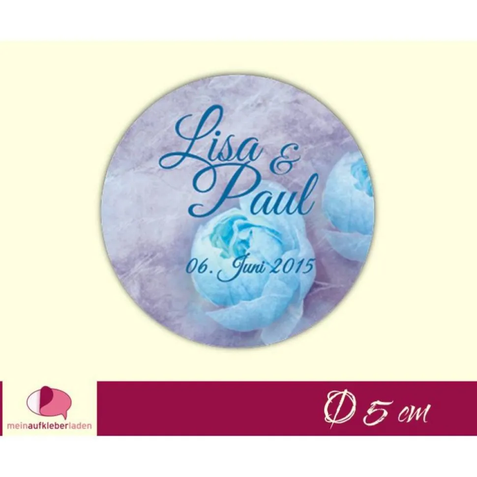 Hochzeitsaufkleber | Vintage Pfingstrose – blau – personalisierbar