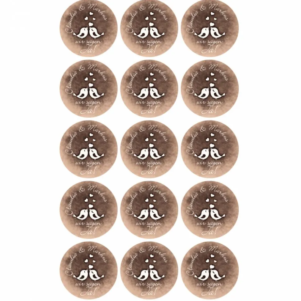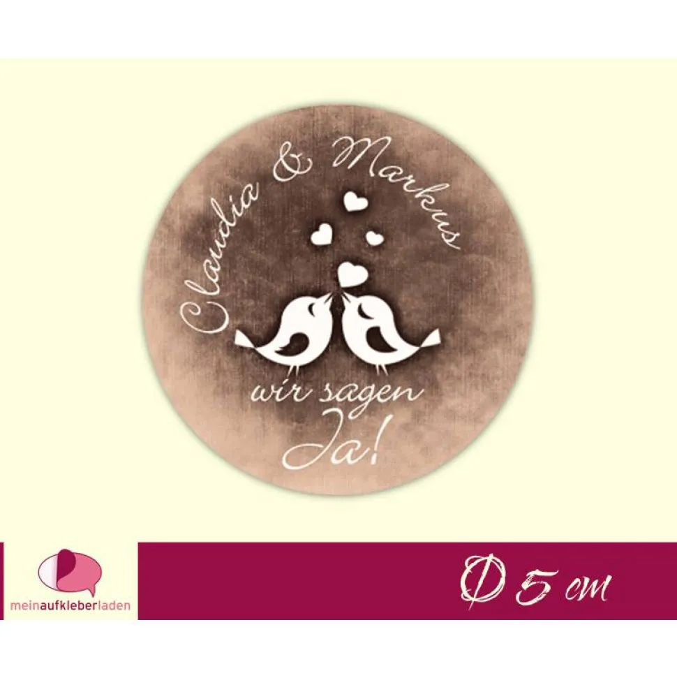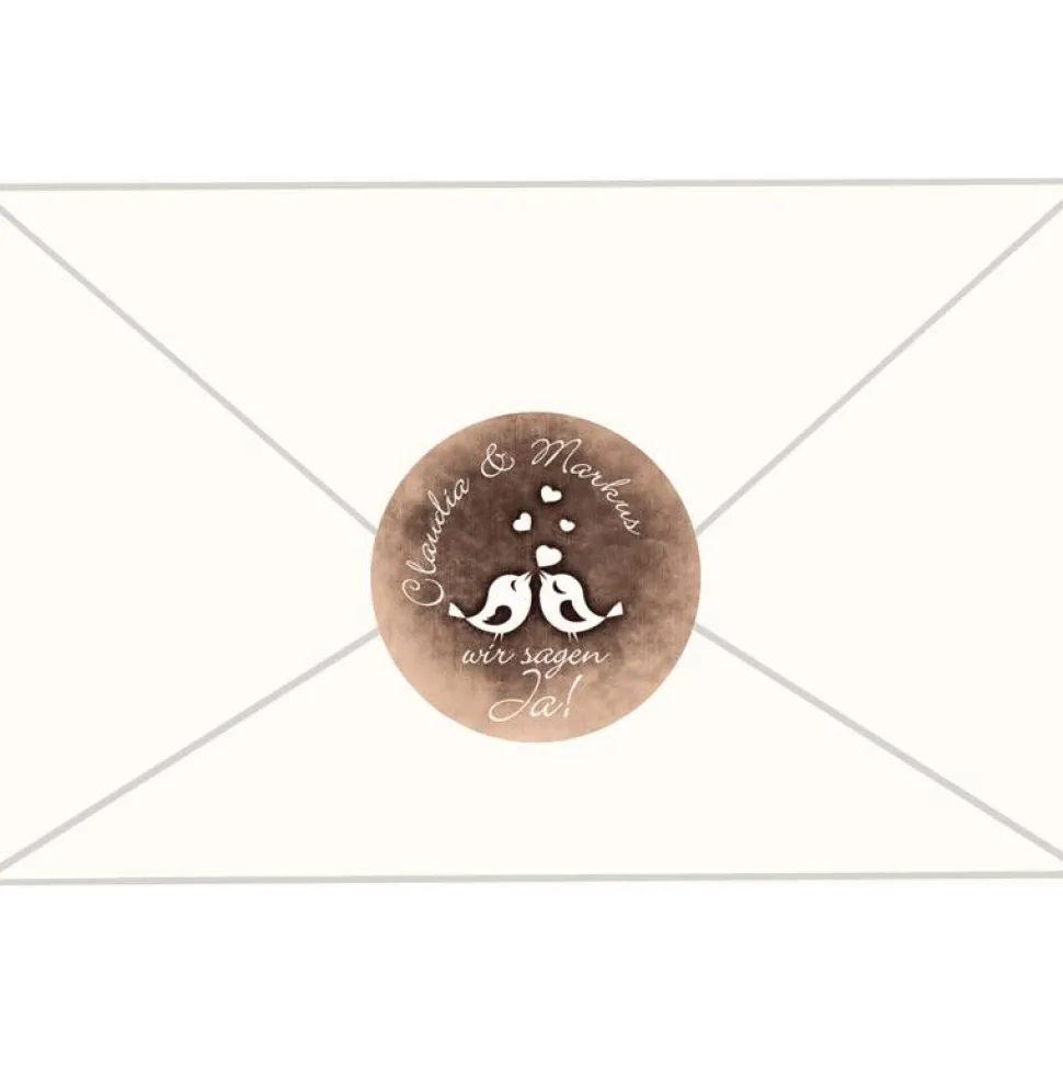 Hochzeitsaufkleber | Vögelchen mit Herzchen – wir sagen Ja